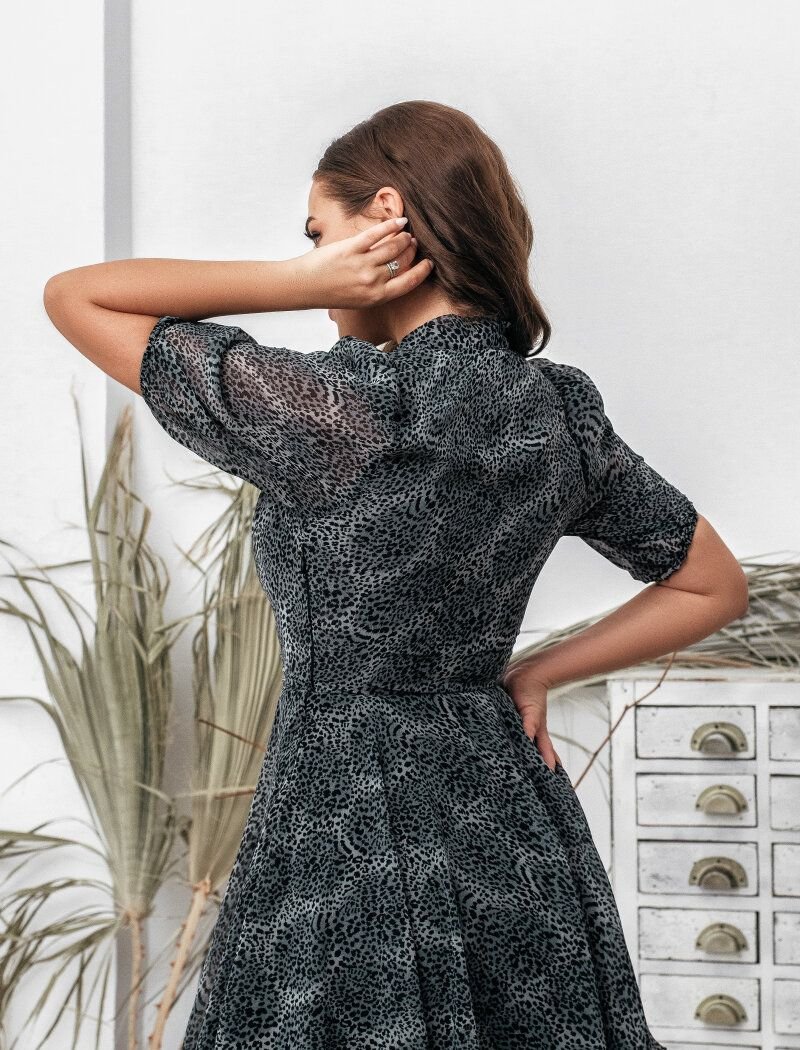Elegant mini dress with an animal print in black and #808080