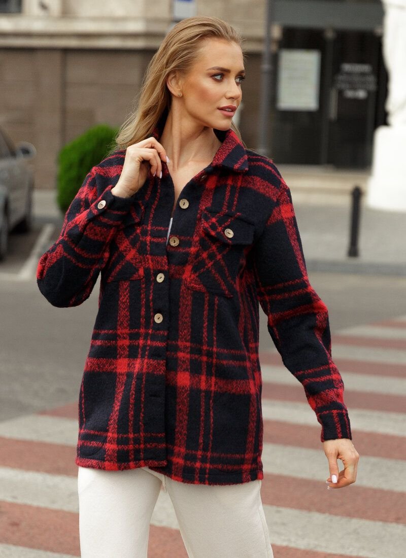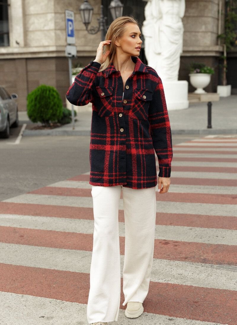 The current jacket-shirt is made of mixed fabric with the addition of wool. This material will allow the model to cheer up a demi-season wardrobe in casual style. The jacket is complemented by decorative patch pockets on the chest and welt pockets in the belt area.