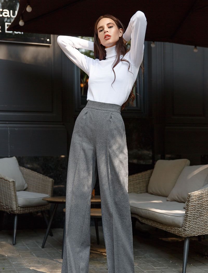Stylish palazzo trousers from Gepur designers, made of premium wool fabric: a trendy high fit, two slash pockets on the sides and fixed arrows along the entire length of the trousers.