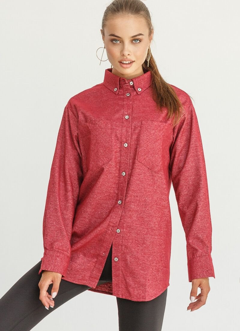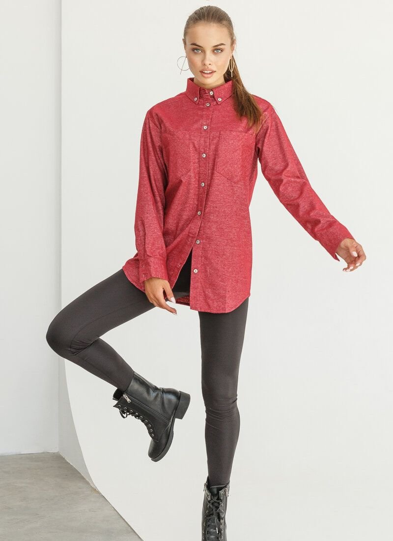A dark red shirt from the spring-summer 2020 collection is a great investment in a casual wardrobe. Laconic restrained cut, button-down collar and fabric with the addition of natural cotton fibers. This thing will easily make friends with both casual clothes and a business suit. The star collection was presented by travel blogger Dasha Kvitkova.