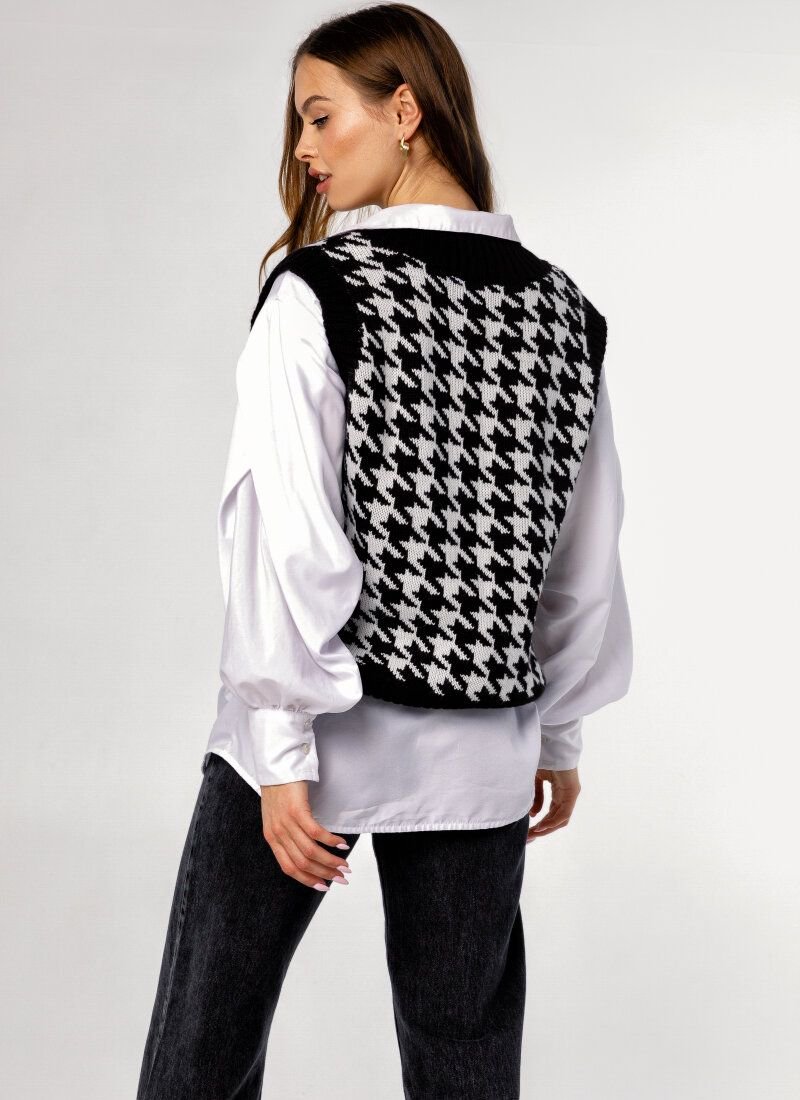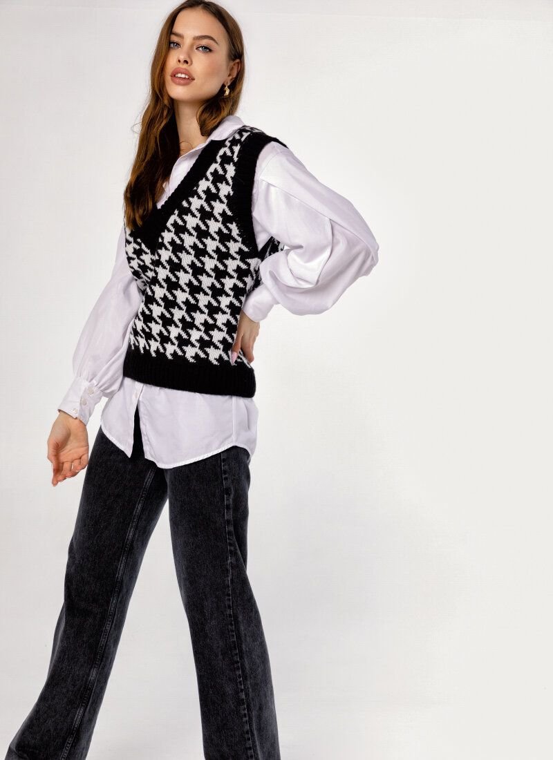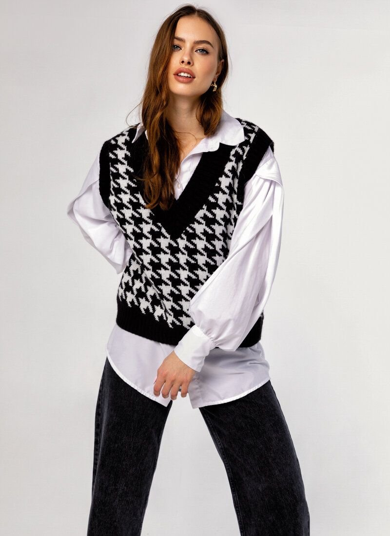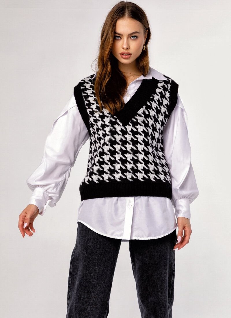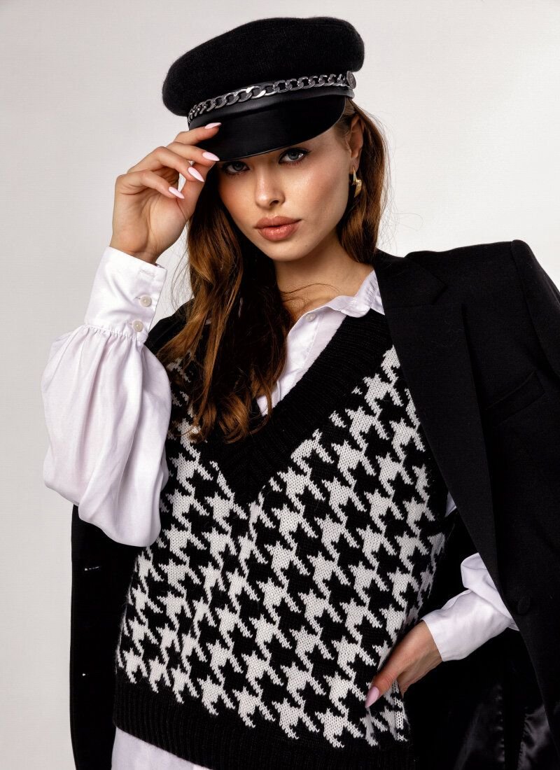 Knitted vest, as on models Prada, Dior, Marc Jacobs, Lacoste FW'20/21, acts as an ideal component of a multi-layered image. The product in a large print "crow's foot" is made of soft voluminous yarn with an admixture of wool.