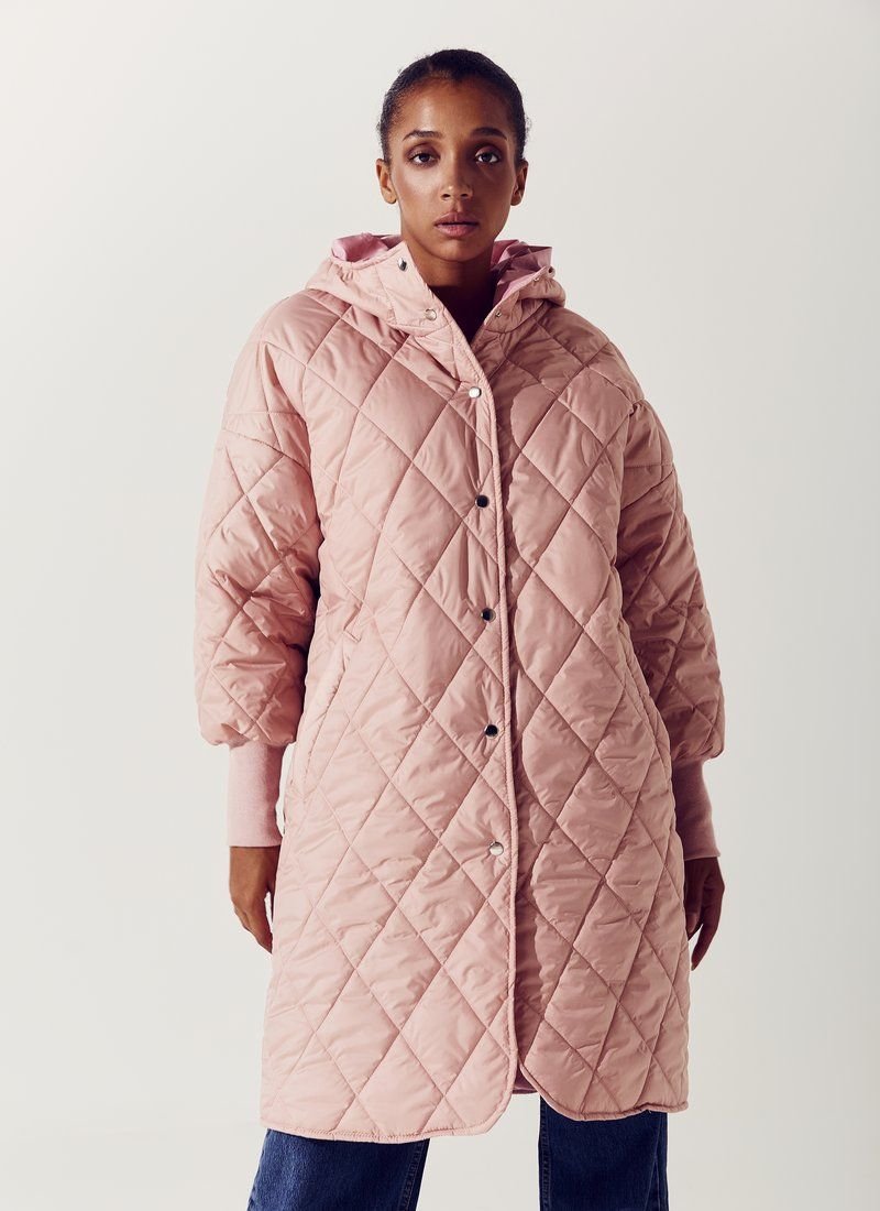 According to Vogue, quilted jackets in various models have become a trend of the FW 2021/22 season. Straight cut, voluminous sleeves and a low shoulder line - these were the jackets presented in the collections of Celine, Miu Miu and Emilio Pucci. The model is presented in a delicate pink color, with a hood, buttons on the front. Features: the role of insulation is sintepon (100 g/m2). Please note that the product is designed for temperatures up to +5 ° C.