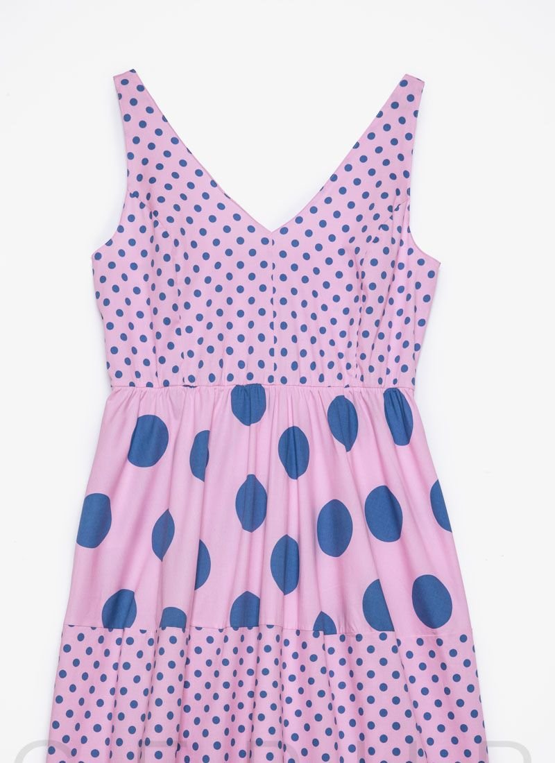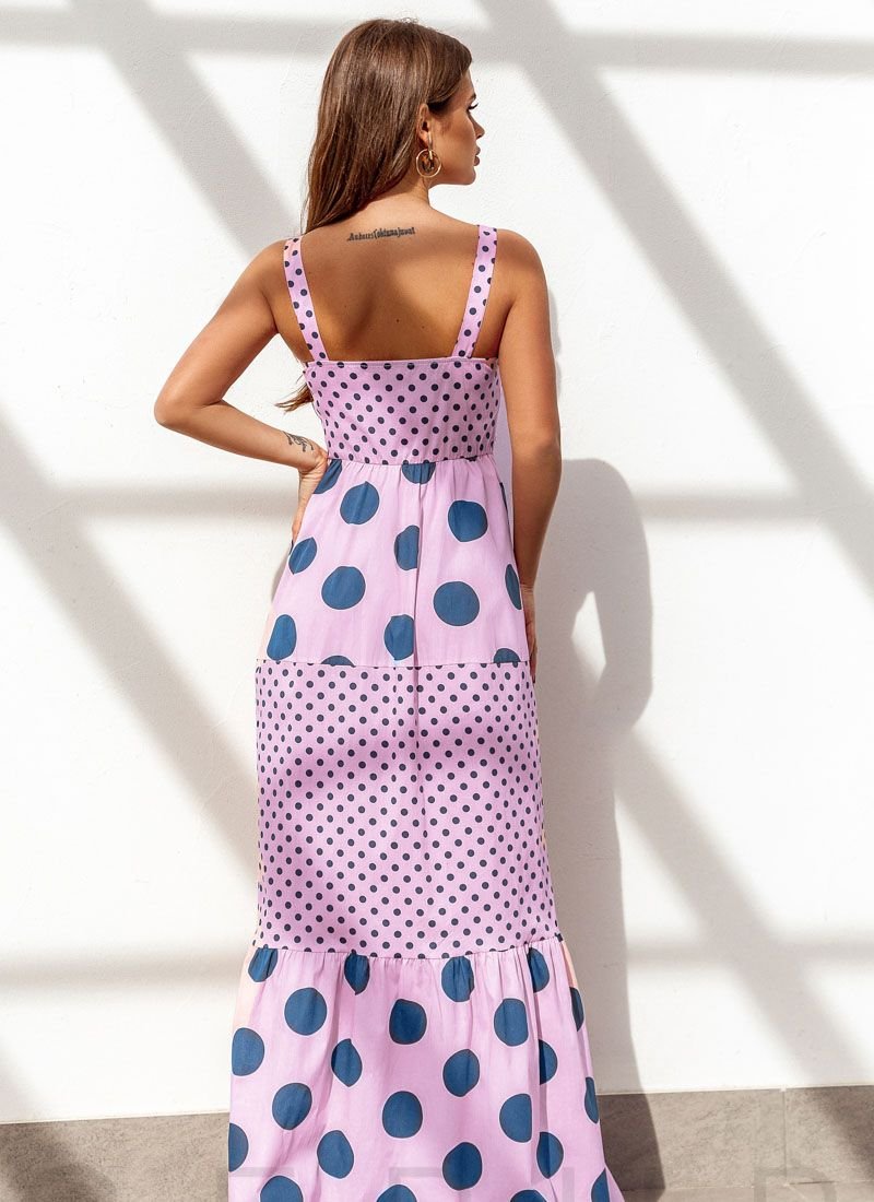 Tiered maxi dress made of cotton fabric in a stylish pea print: wide non-adjustable straps, a curly neckline, elastic insert on the back and waist.
