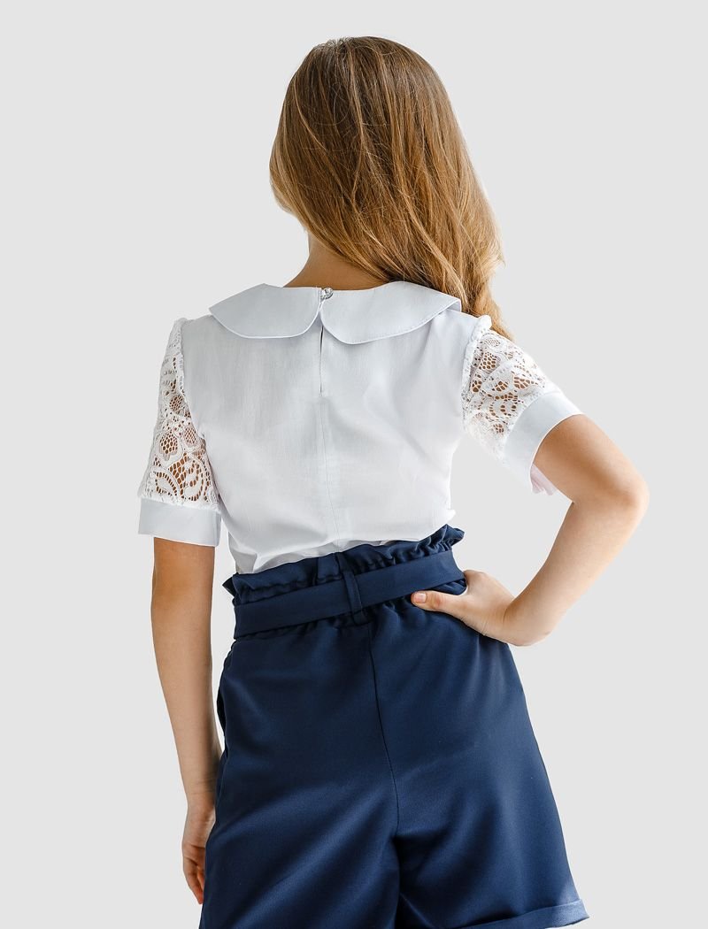 Classic shorts with a high fit, two welt pockets on the sides and an elastic insert on the waist with a plain ribbon on the loops.