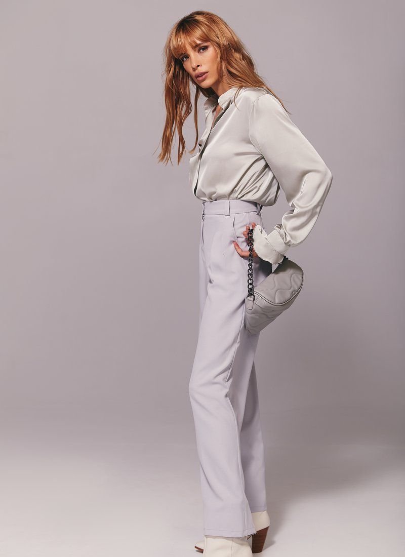 Mint silk blouse with long sleeves, turn-down collar. This model will add a classic look to your image. The blouse looks great with both trousers and jeans.