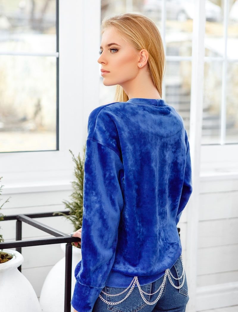Gepur charity project. An original sweatshirt from Gepur designers, made of soft plush: a voluminous front decor in the form of grommets, contrasting embroidery #Yalyubov and removable chains on an elastic band.