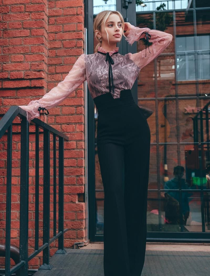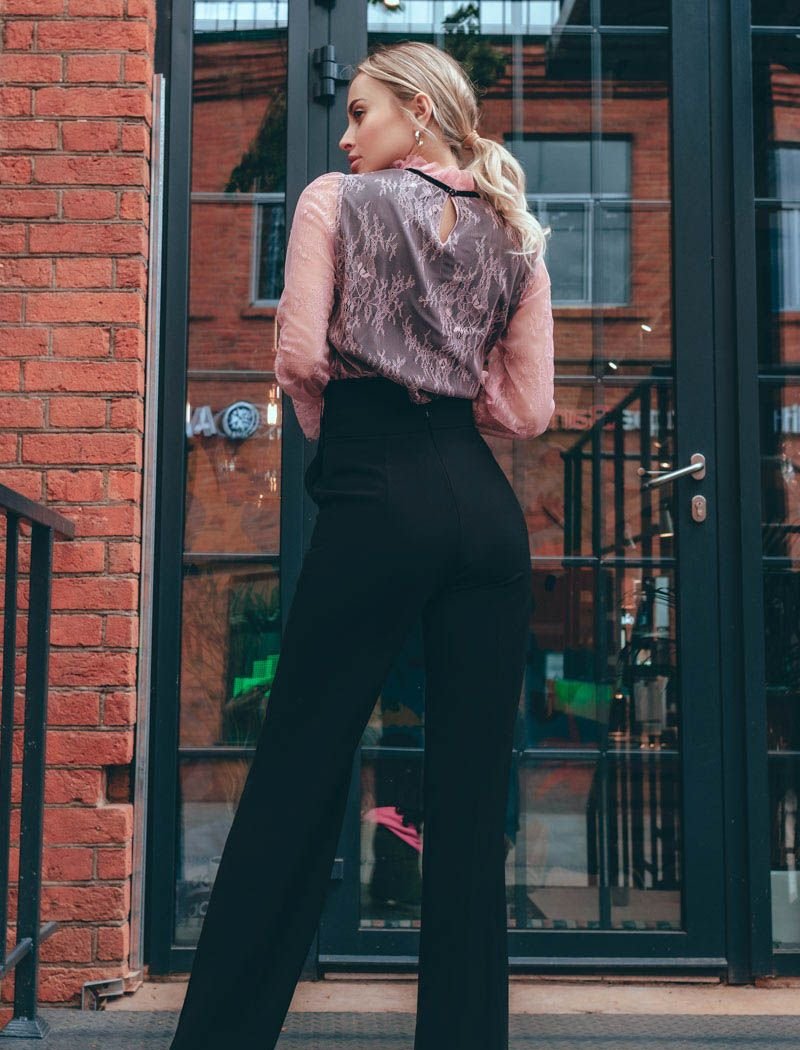 Classic black trousers of an experimental cut from Gepur designers: two slash pockets, the model with a high fit is made of soft suit fabric with the addition of elastic threads for greater strength, and a wide waistband allows you to correctly place accents. The star collection is presented by the famous singer Anna Sedokova.
