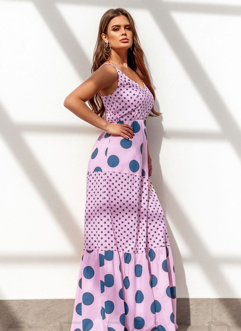Tiered maxi dress made of cotton fabric in a stylish pea print: wide non-adjustable straps, a curly neckline, elastic insert on the back and waist.