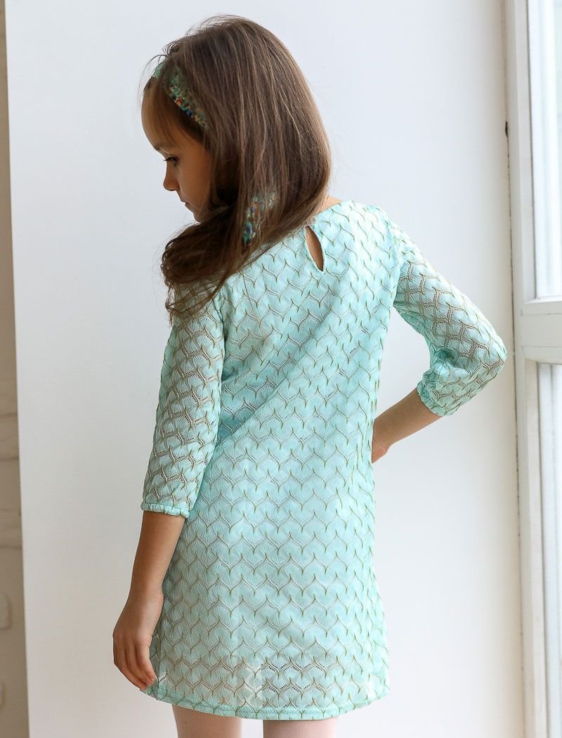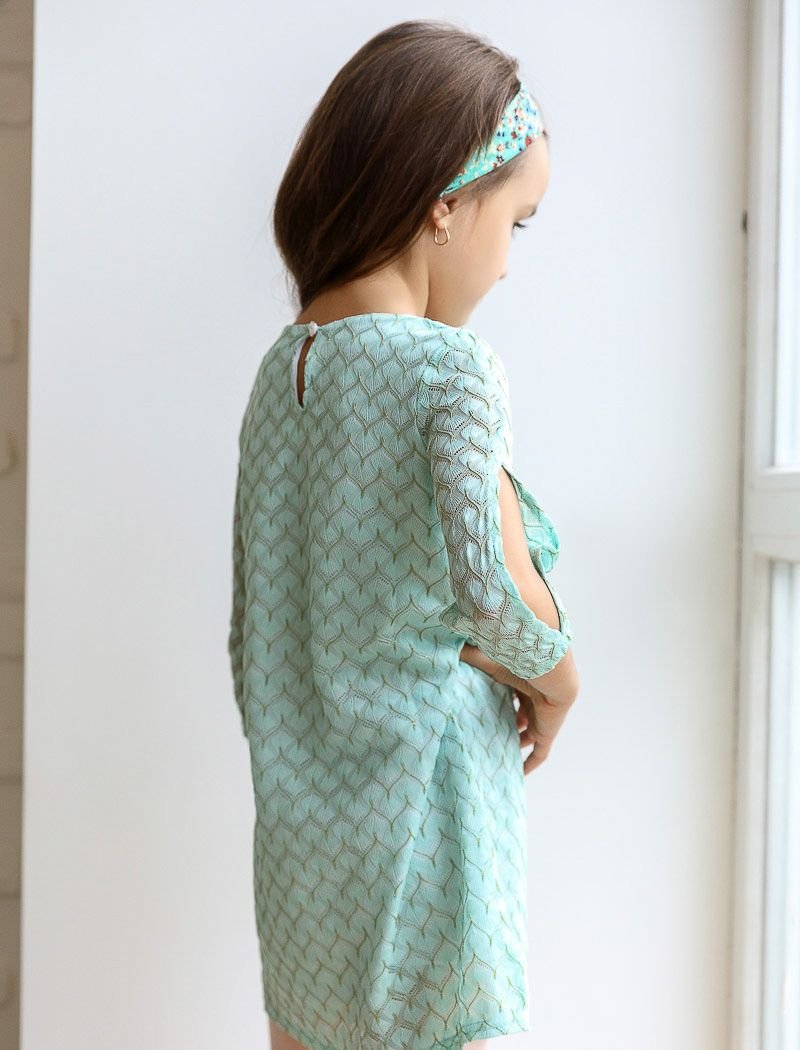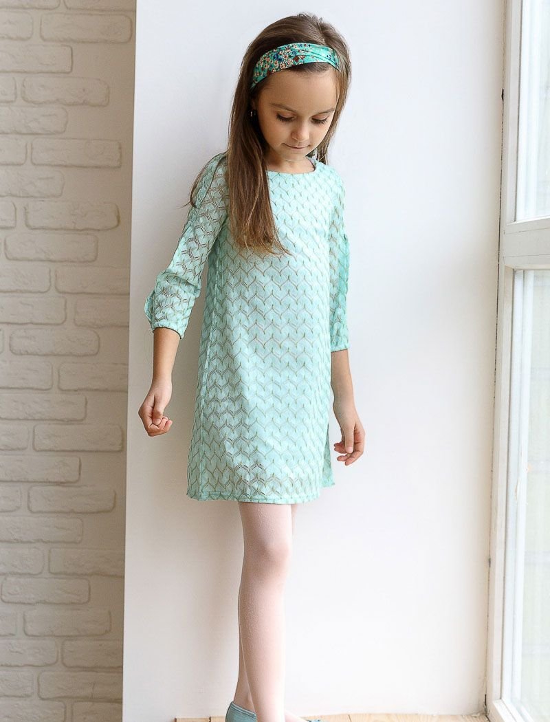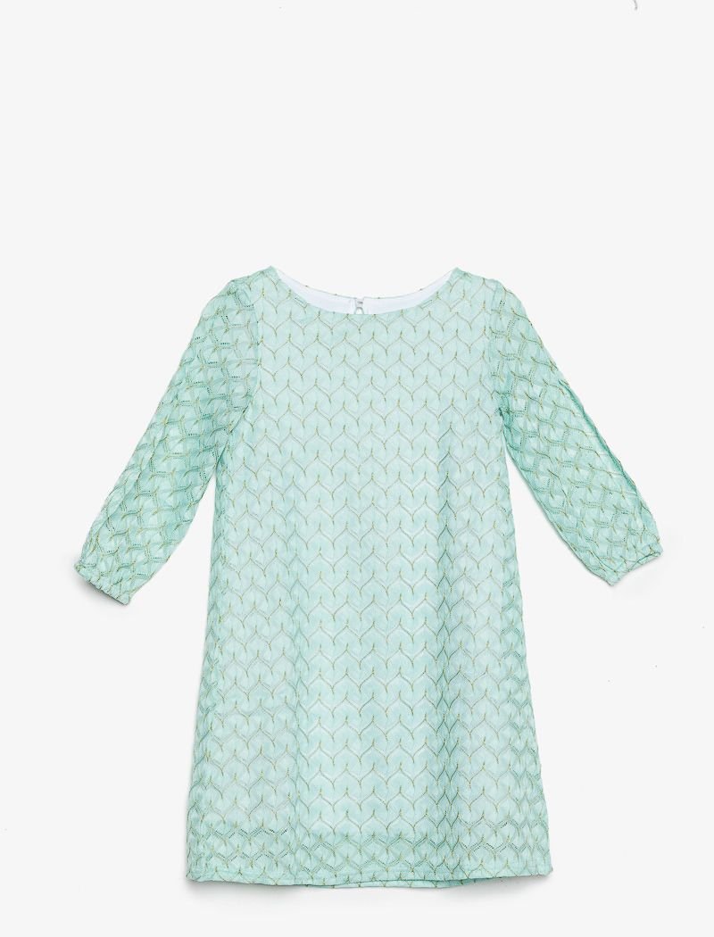 Children's A-line dress with a golden thread, a spectacular 3/4-length sleeve decorated with a small slit.