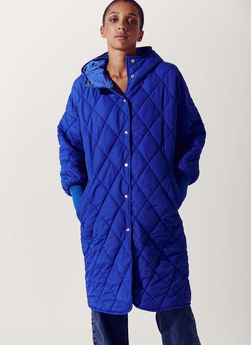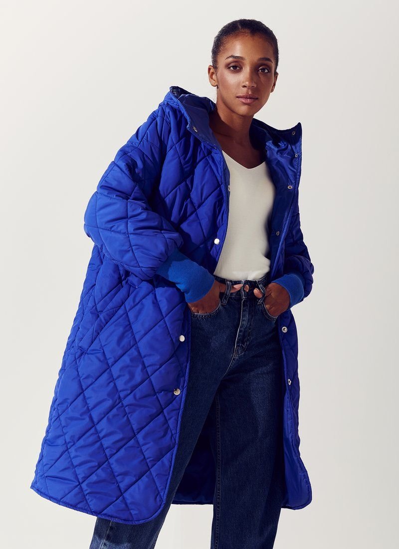 According to Vogue, quilted jackets in various models have become a trend of the FW 2021/22 season. Straight cut, voluminous sleeves and a low shoulder line - these were the jackets presented in the collections of Celine, Miu Miu and Emilio Pucci. The model is presented in a bright blue color, with a hood, buttons on the front. Features: the role of insulation is sintepon (100 g/m2). Please note that the product is designed for temperatures up to +5 ° C.