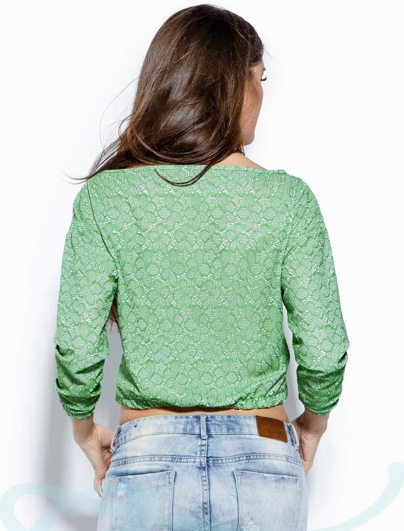 Cropped top with long sleeves and elastic cuffs, made of jacquard with figured embossing.