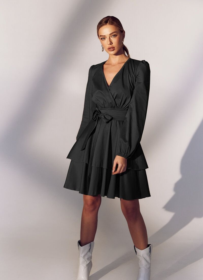 The romantic mini dress is made of blended cotton - a durable, body-pleasing material. The mood of the model is created by a multi-tiered skirt made of flounces, in the spirit of the SS’21 Balmain and Chanel shows. The bodice accentuates the decollete area, and the waist is emphasized by a removable belt-ribbon.