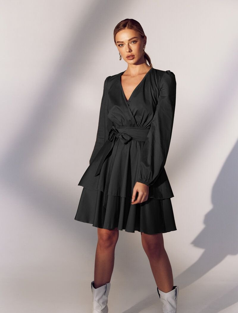 The romantic mini dress is made of mixed cotton a durable, pleasant to the body material. The mood of the model is created by a multi-tiered skirt made of flounces, in the spirit of the SS21 Balmain and Chanel shows. Bodice on the back?the x accentuates the decollete area, and the waist is emphasized by a removable belt-ribbon.