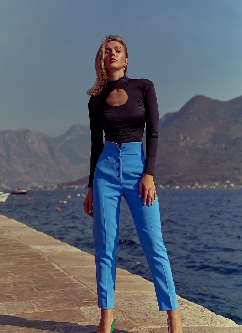 Bodysuits have already become part of the basic wardrobe. In the new collection, Gepur designers presented a model with a stand-up collar, stylized with a round neck. The product has inserts in the shoulders to create a beautiful shape.
