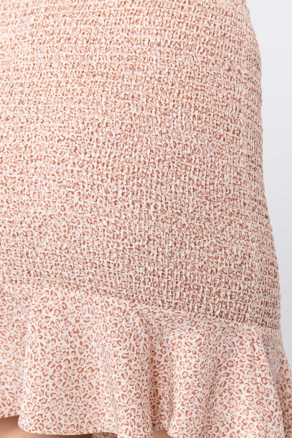 ImportedS.M.LSMOCKED RUFFLE PRINT MINI SKIRT100% Polyester Taupe ACT