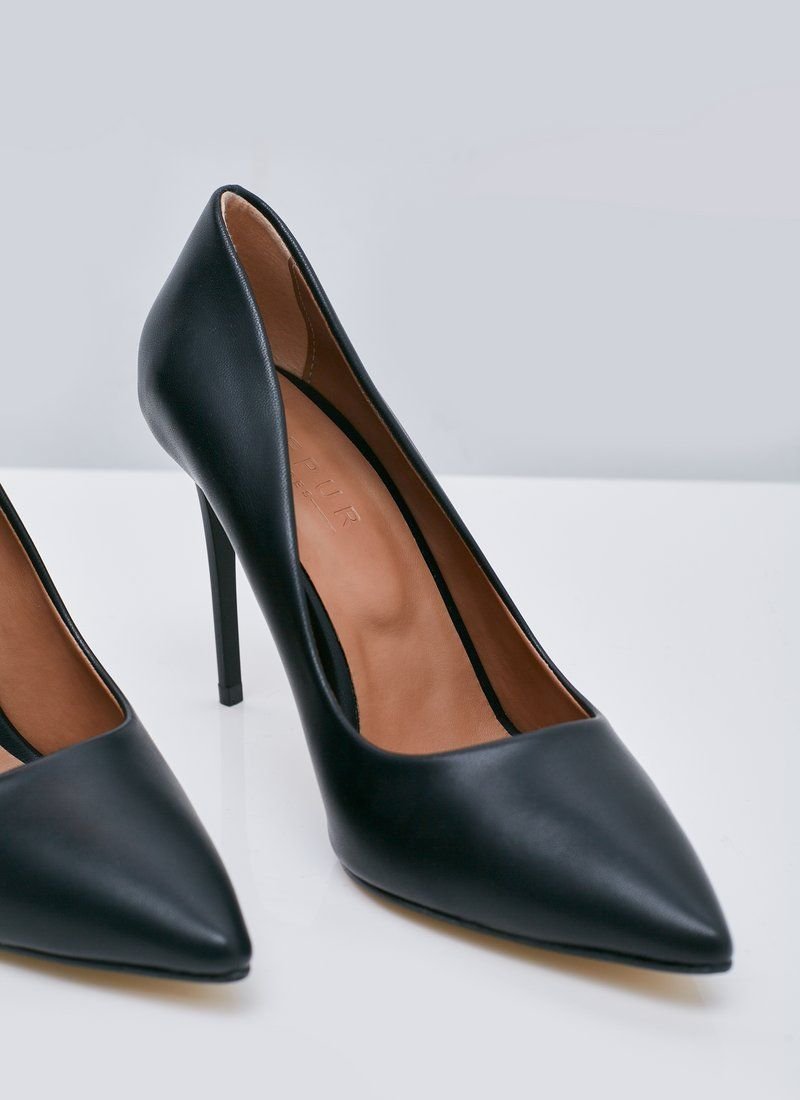 Sophisticated black pumps with a stiletto heel, with a pointed toe. The classic timeless model will be relevant for more than one season. The heel height is 11 cm.