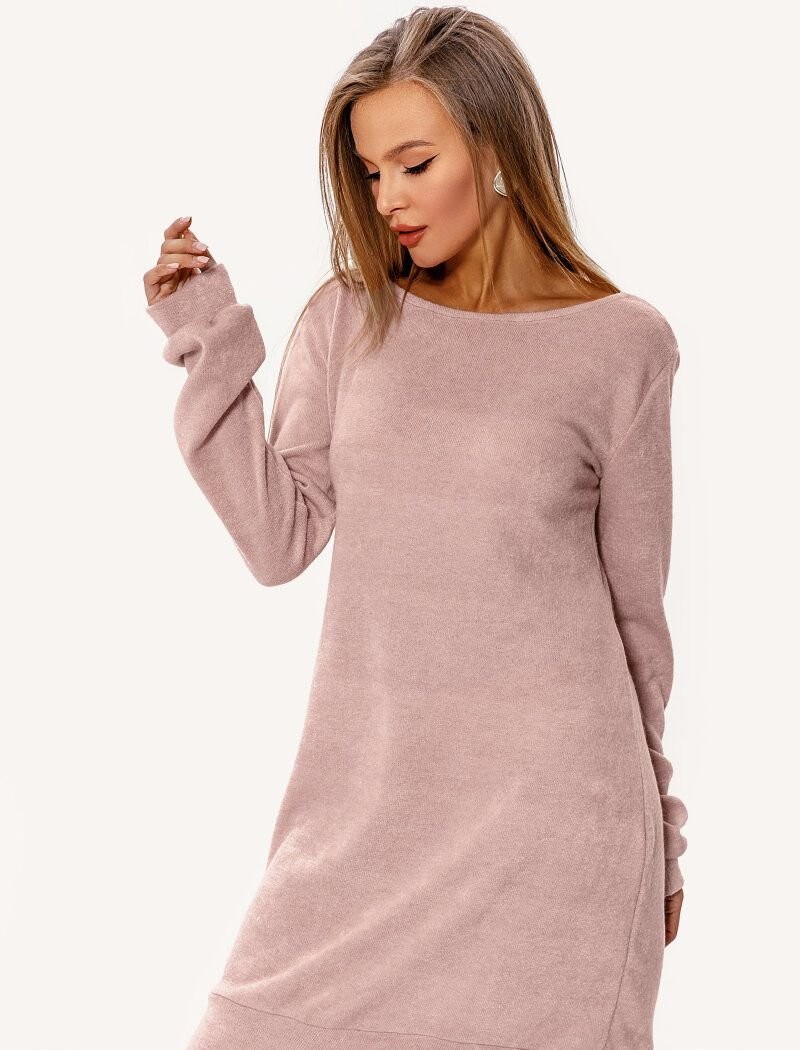 Knitted dress in the oversized style: a-silhouette, boat neck, long sleeve with an elastic cuff.