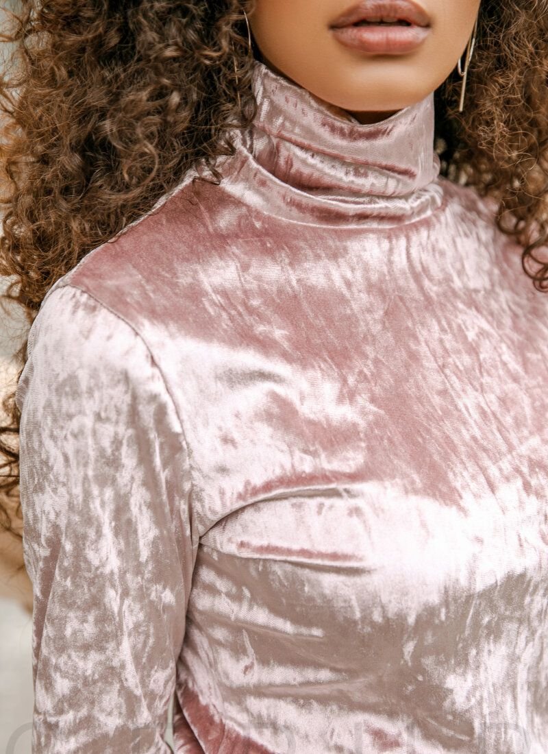A velour turtleneck of a restrained cut with a golf collar and long sleeves.