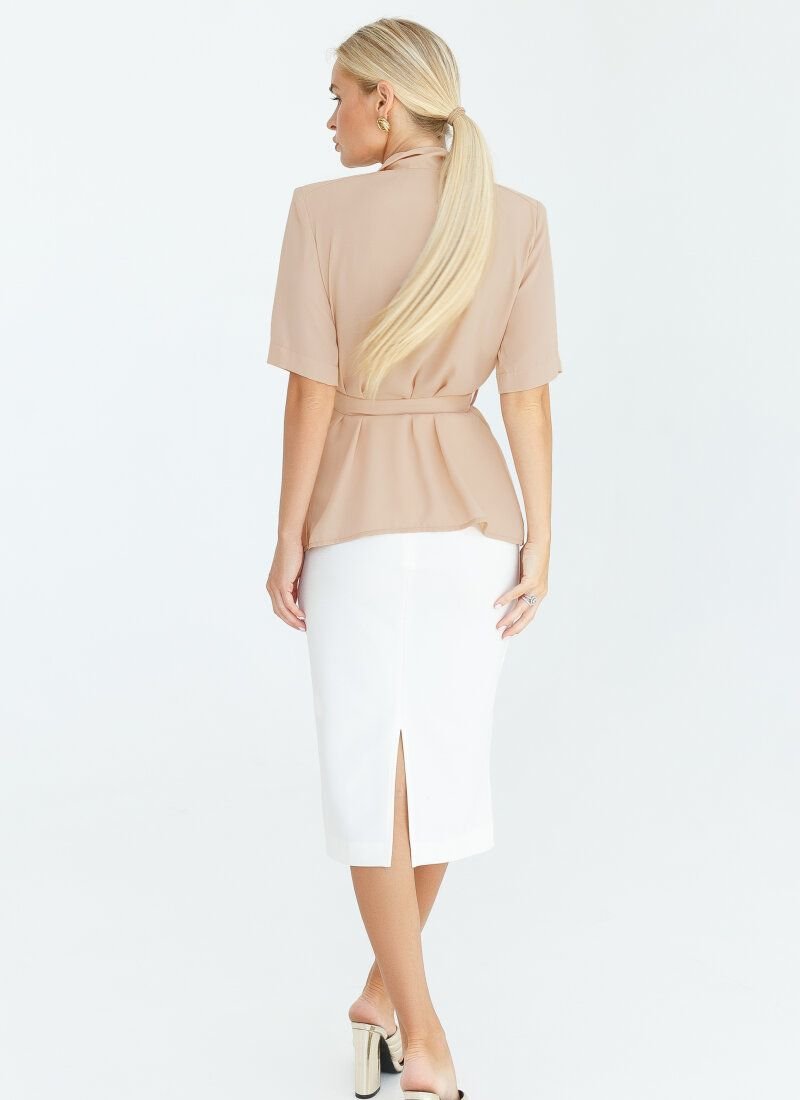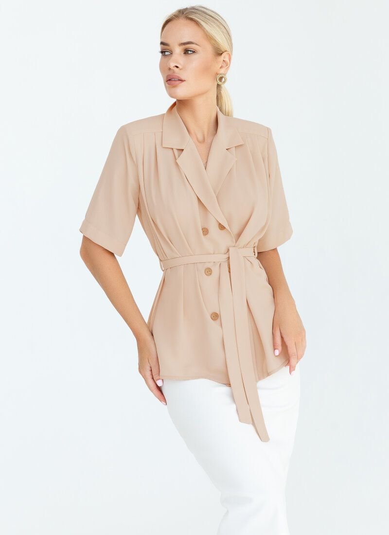 Blouse-jacket - a combination of strict style and airy chiffon makes a blouse-jacket an ideal option for creating an office look in summer. The model is complemented by a turn-down collar with lapels and a removable belt.