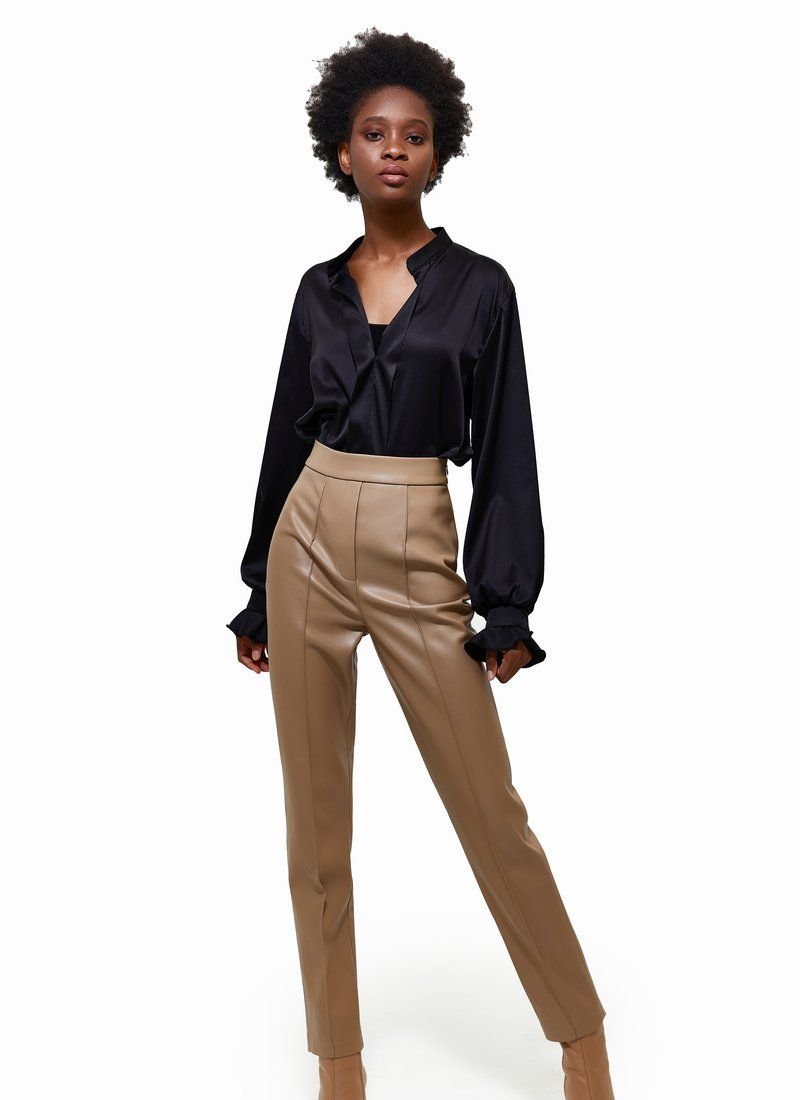 Black silk blouse with long sleeves, turn-down collar. This model will add a classic look to your image. The blouse looks great with both trousers and jeans.