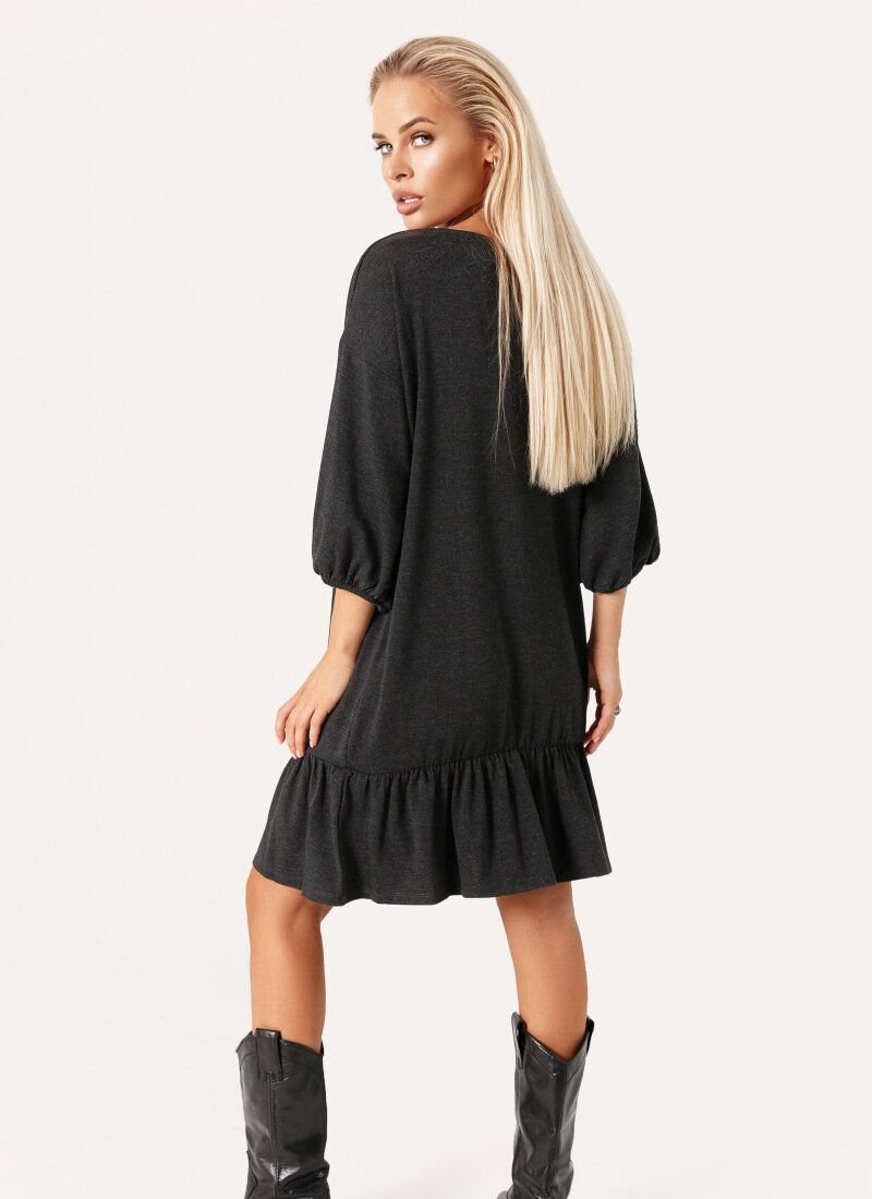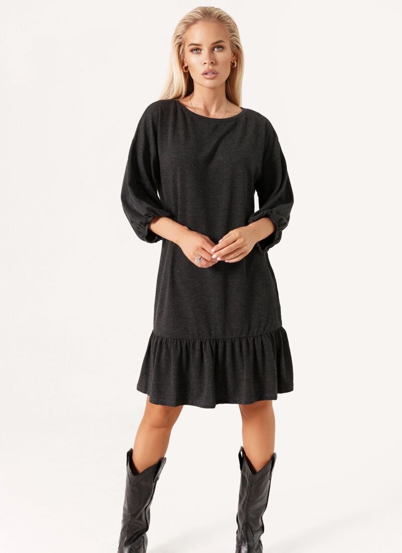 In creating a gray mini dress, the main bet is made on comfort and conciseness of style. The model with a round neck, 3/4 sleeves on elastic cuffs is made of lightweight knitted material. The airiness of the product was given with the help of a shuttlecock, effectively framing the hem.
