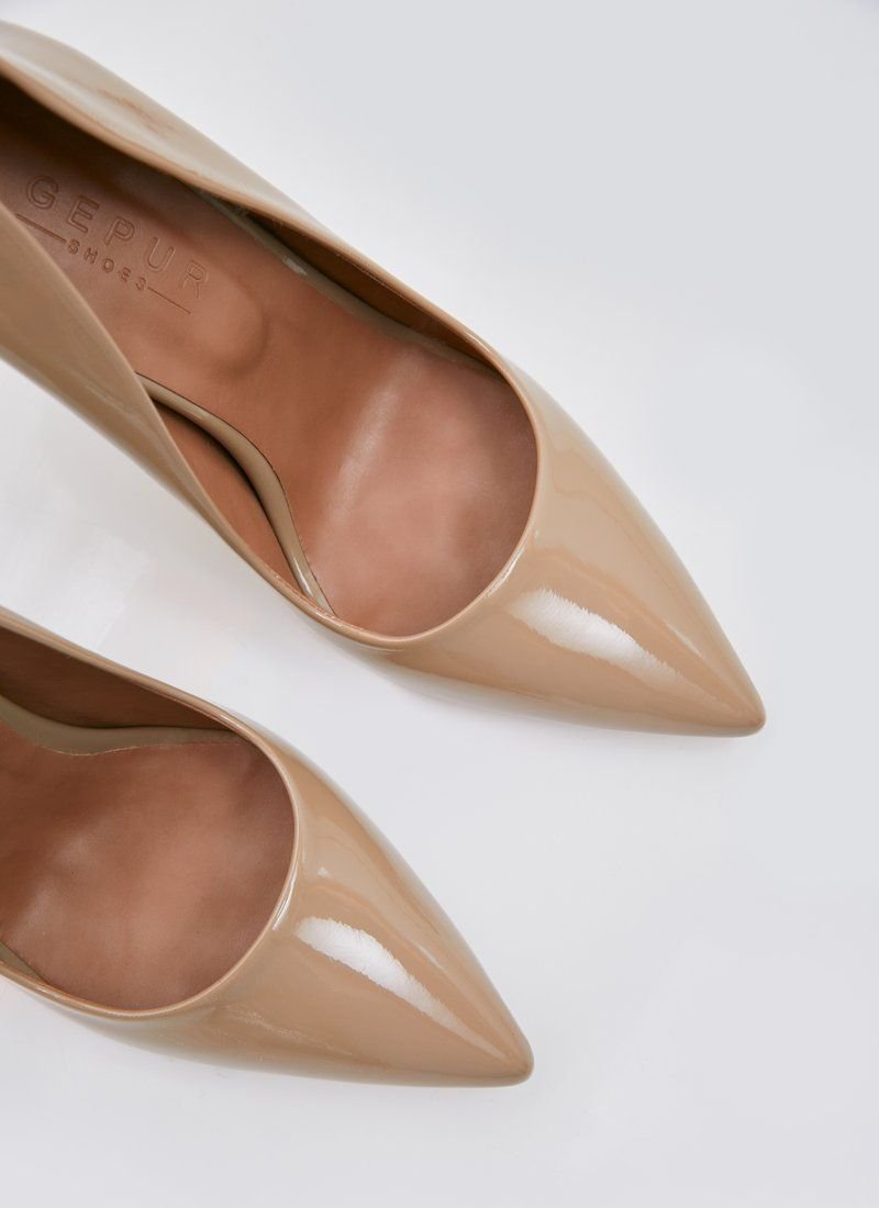 Sophisticated beige pumps with a stiletto heel, with a pointed toe. The classic timeless model will be relevant for more than one season. The heel height is 11 cm.