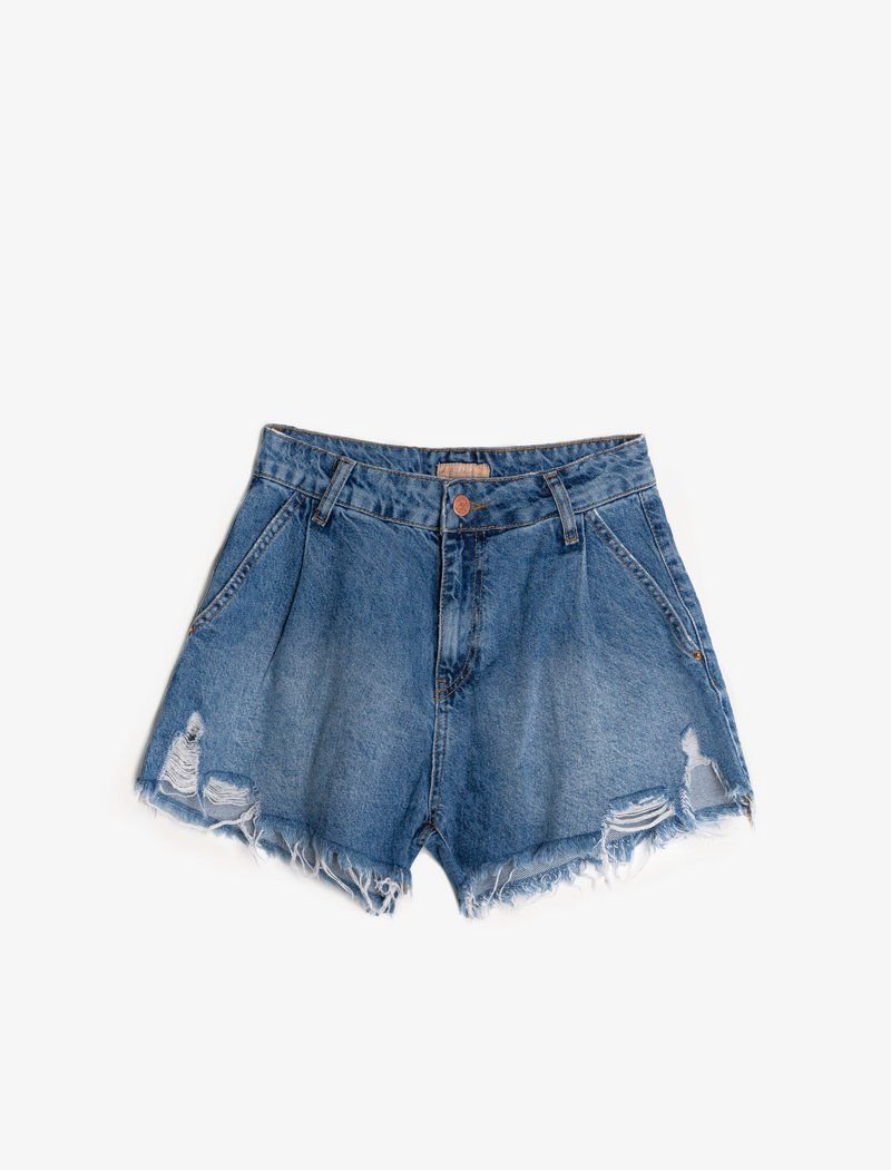 Shorts with scuffs and raw edges are a constant companion of relaxed images. To create a model of a universal blue color, the designers chose soft cotton.