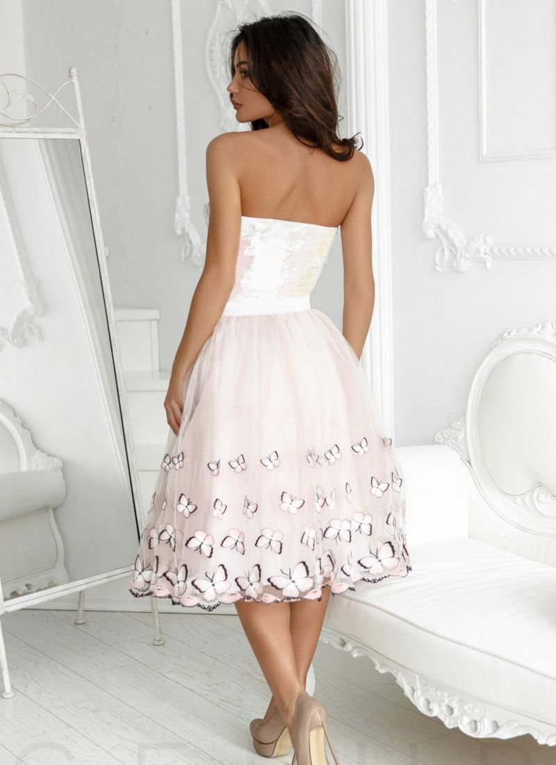 Evening top from Gepur designers, made in the form of a short corset with mother-of-pearl sequins.