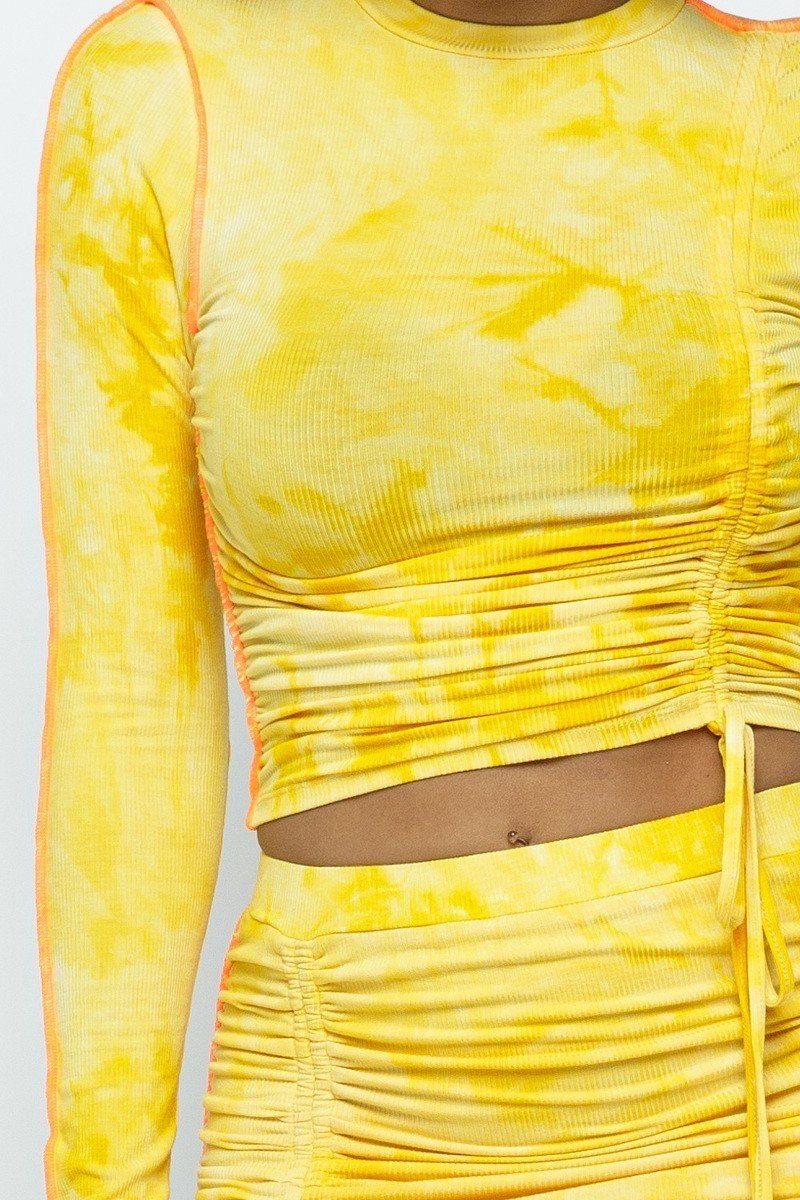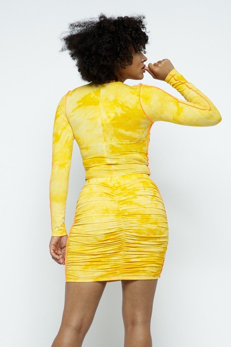 ImportedS.M.LStretchable Long Sleeve Cropped Top With 2Way Front ZippedHigh-Waist Mini Skirt With Buckle Details10% Rayon 87% Polyester 3% Spandex Orange CAP