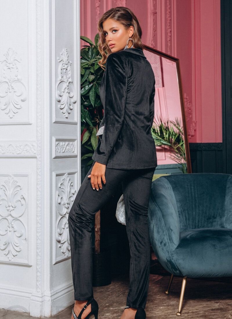 In the autumn-winter 2019 collection, Gepur designers focused on refined velvet fabrics. A black suit consisting of a fitted jacket with an accentuated shoulder line, a shimmering shawl collar and cropped trousers with a high fit can become the main character of your evening outfit. To create a wow effect, our stylists recommend wearing a jacket without a base top. The star collection is presented by the famous blogger, it-girl and finalist of "Miss Belarus 2016" Masha Lobanova.