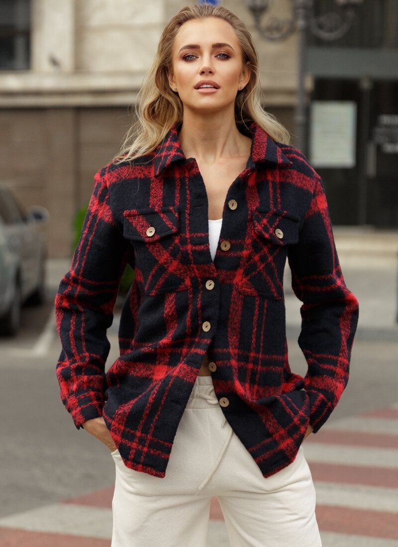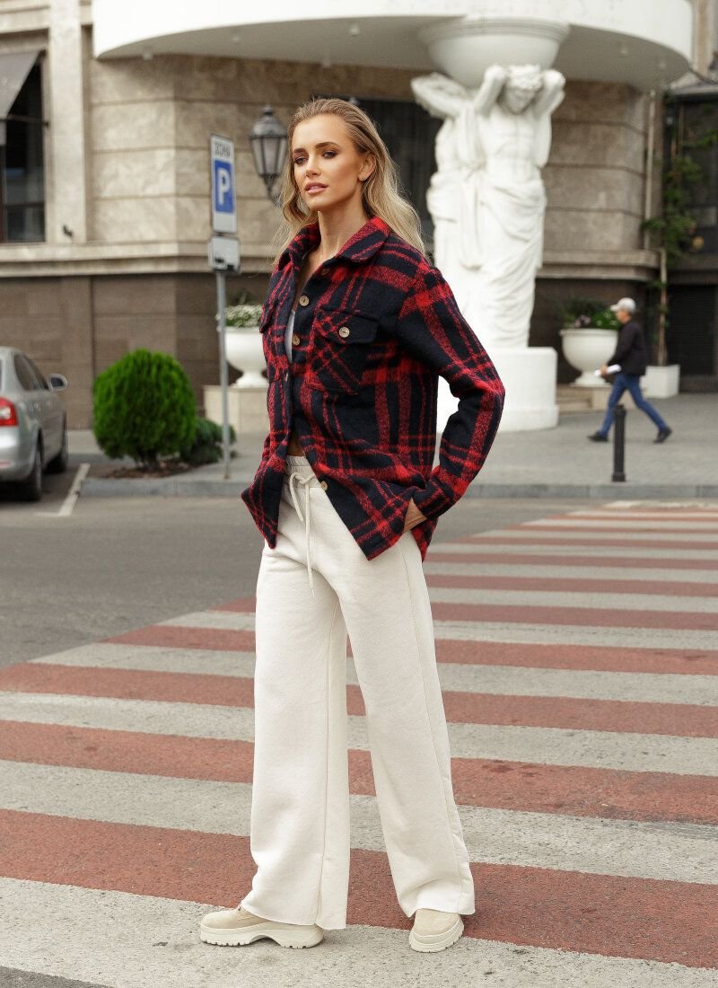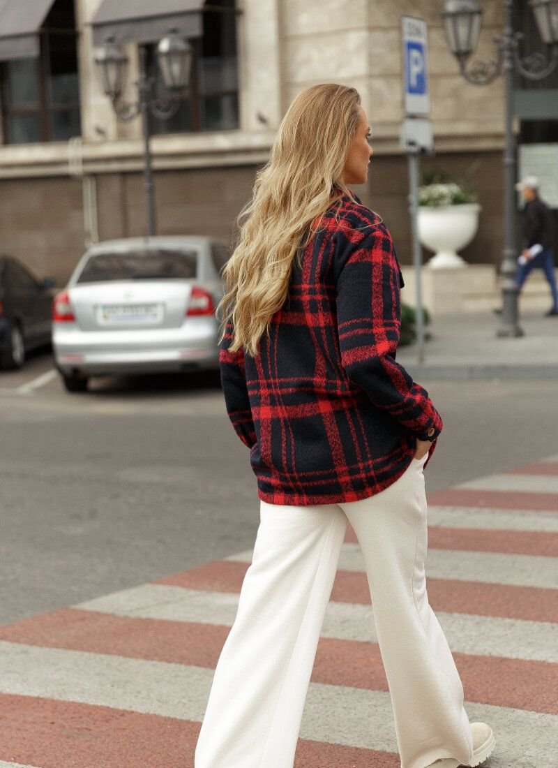 The current jacket-shirt is made of mixed fabric with the addition of wool. This material will allow the model to cheer up a demi-season wardrobe in casual style. The jacket is complemented by decorative patch pockets on the chest and welt pockets in the belt area.