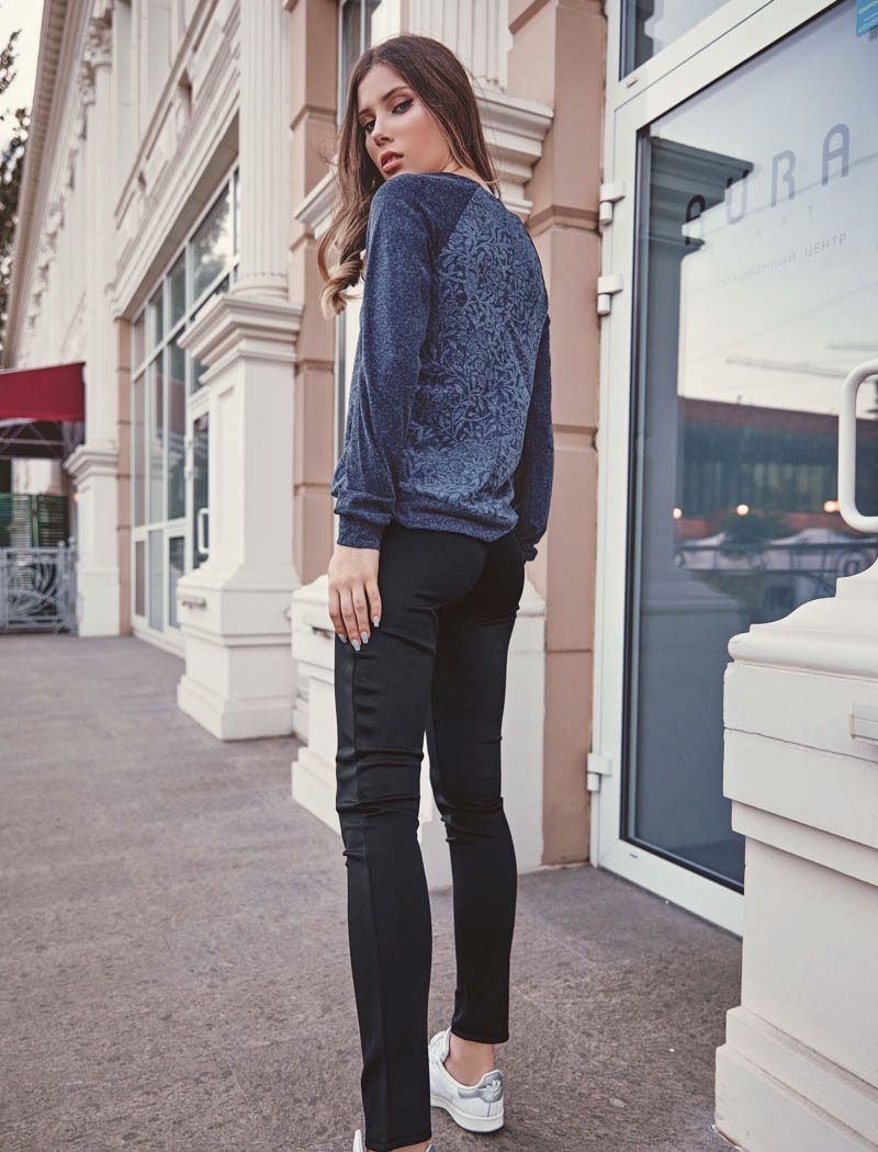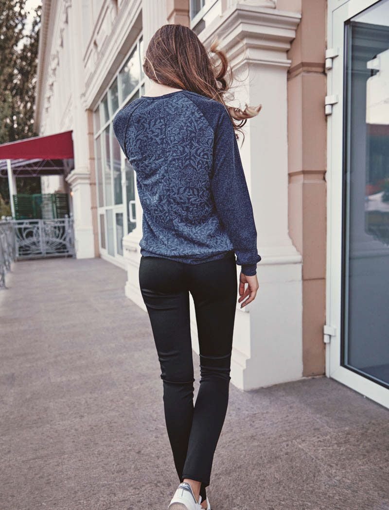 Leggings of a narrow cut with a high fit, made of elastic fabric.