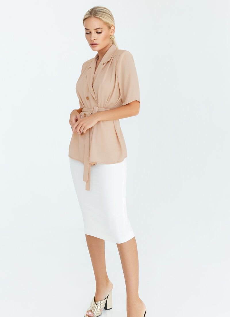 Blouse-jacket - a combination of strict style and airy chiffon makes a blouse-jacket an ideal option for creating an office look in summer. The model is complemented by a turn-down collar with lapels and a removable belt.