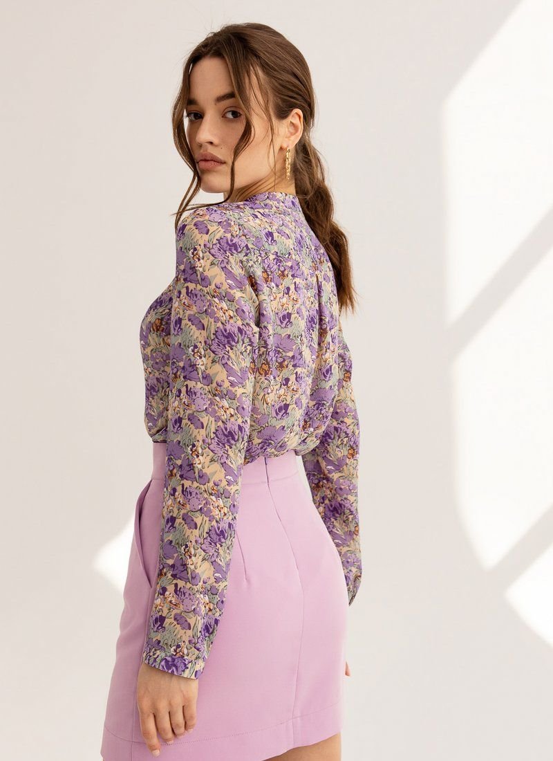 A floral motif is responsible for the right mood of the blouse, which was included in the list of current trends of the SS’21 season according to Vogue. The femininity of the model is also supported by a thin chiffon.