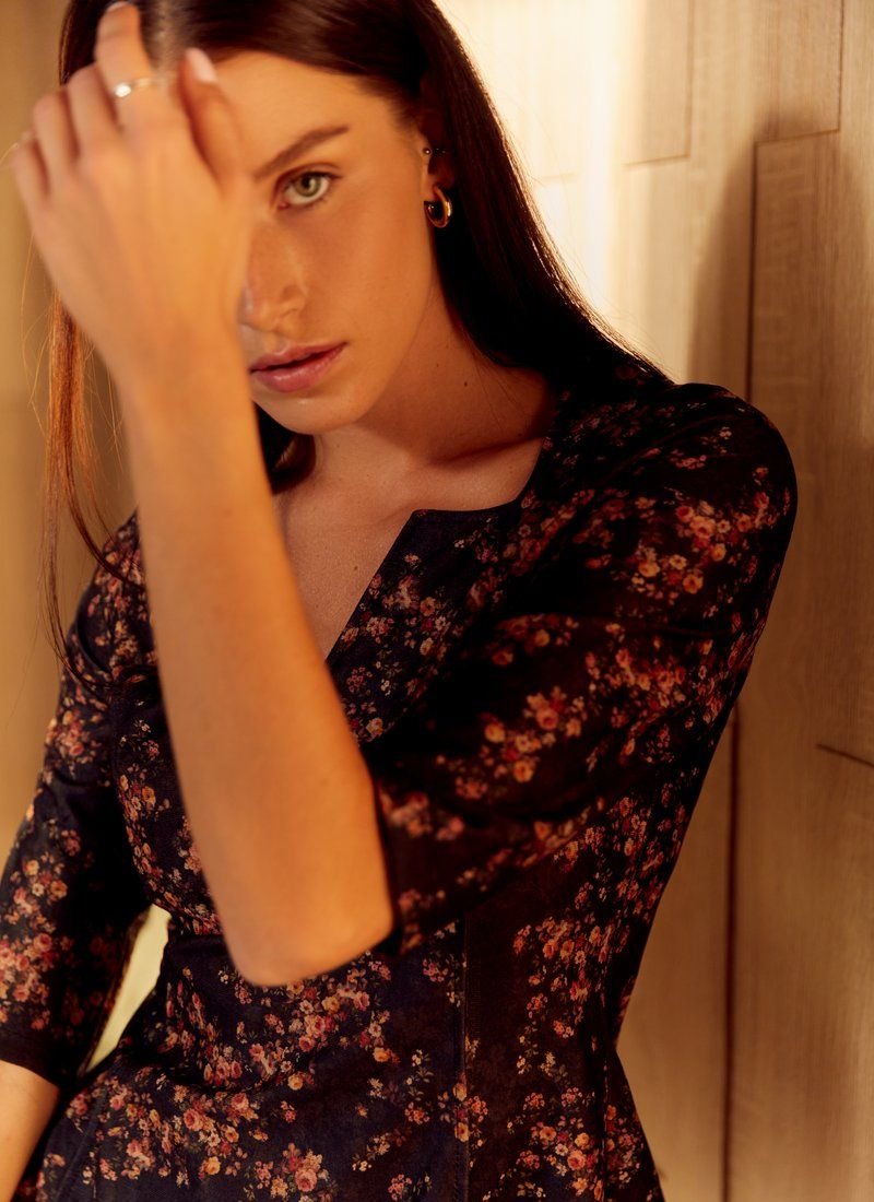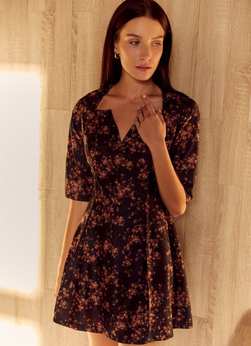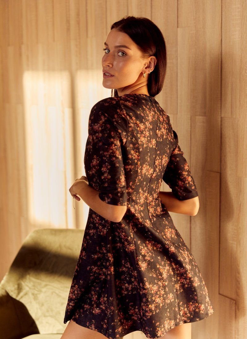 Suede dress in floral print