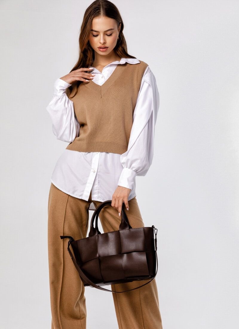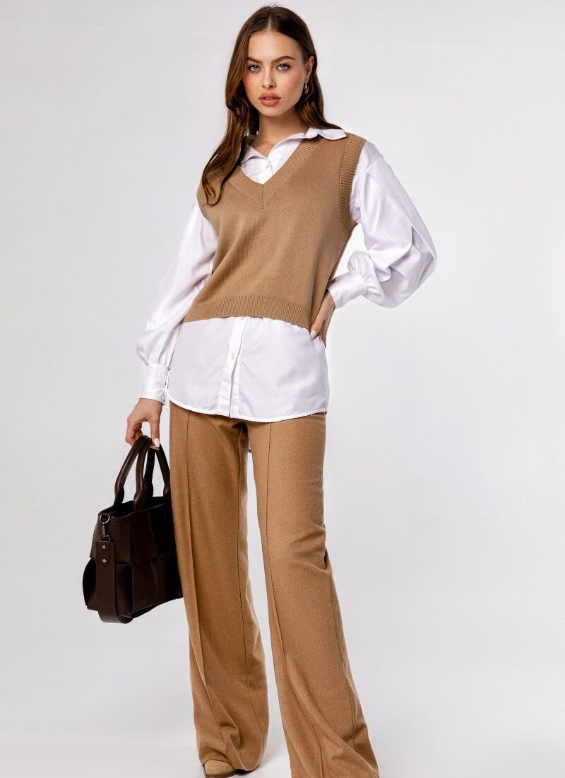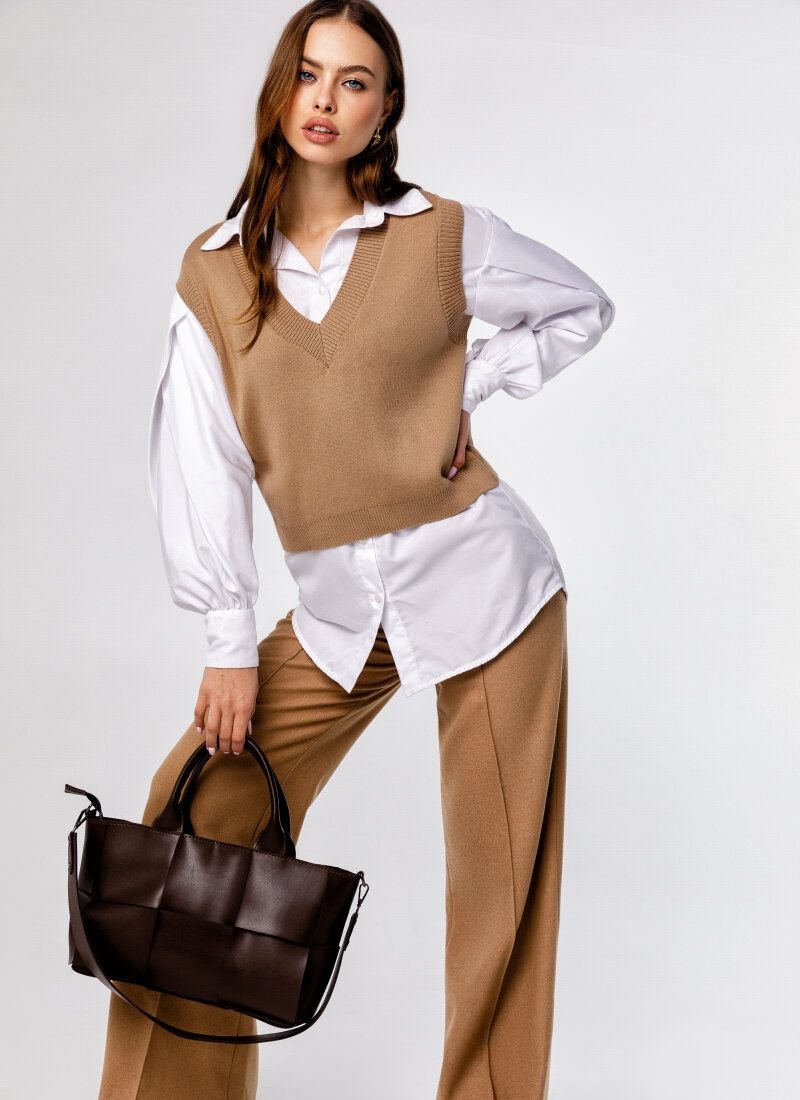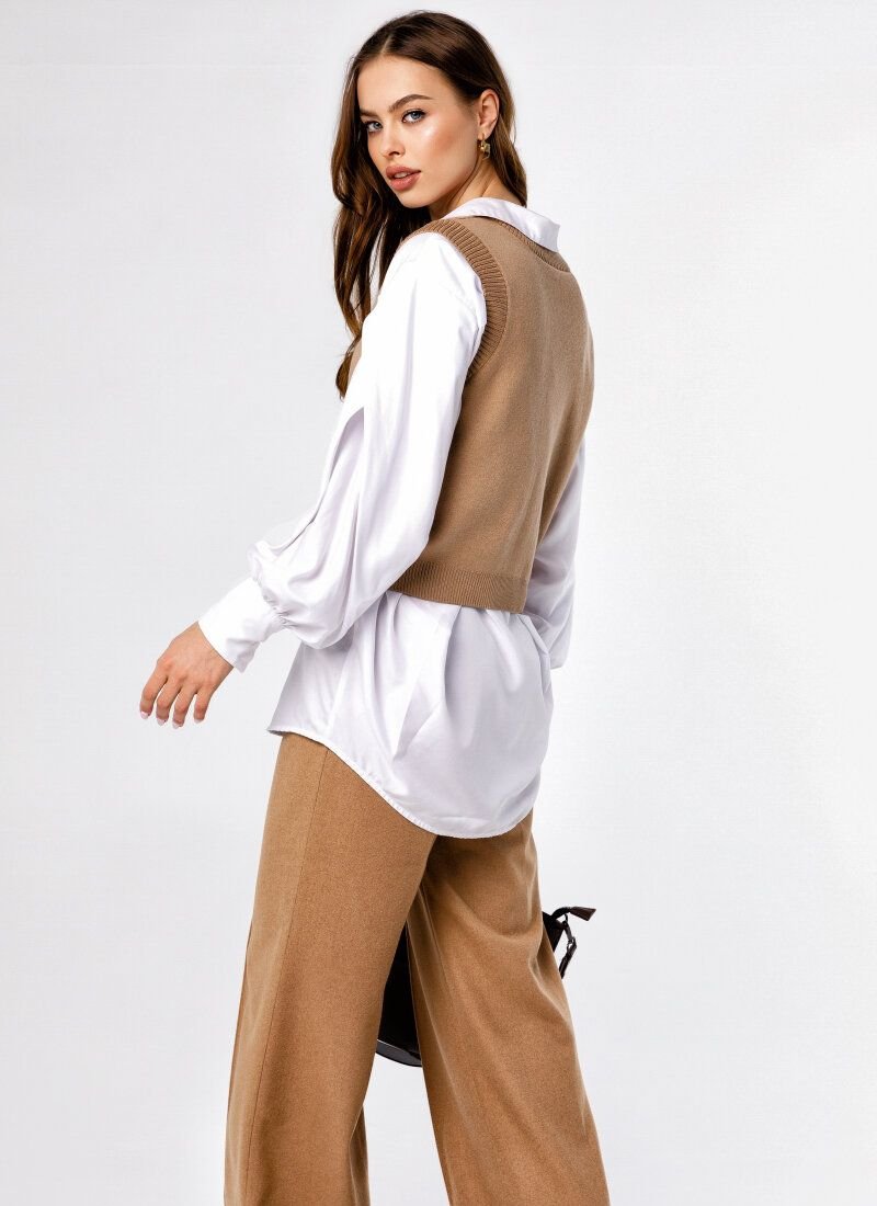 A preppy-style knitted vest has become a must-have element of the SS’20/21 wardrobe. The basic beige model is made of soft cotton knitwear.