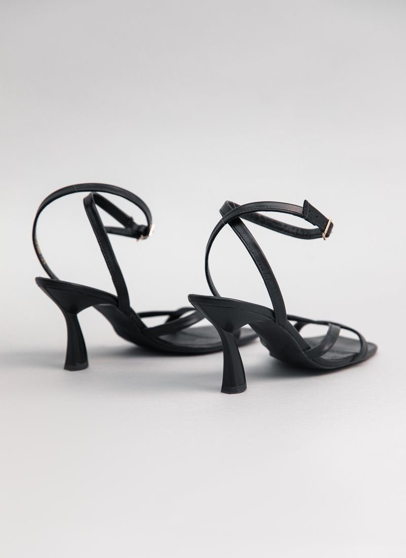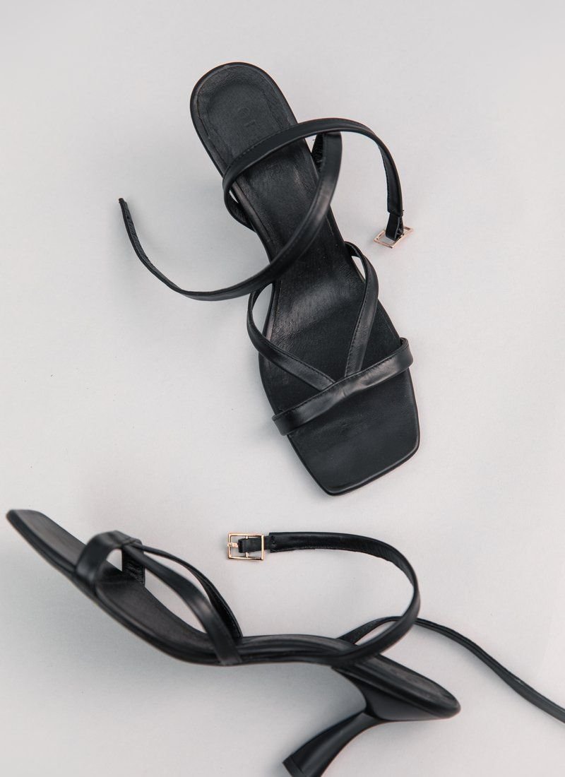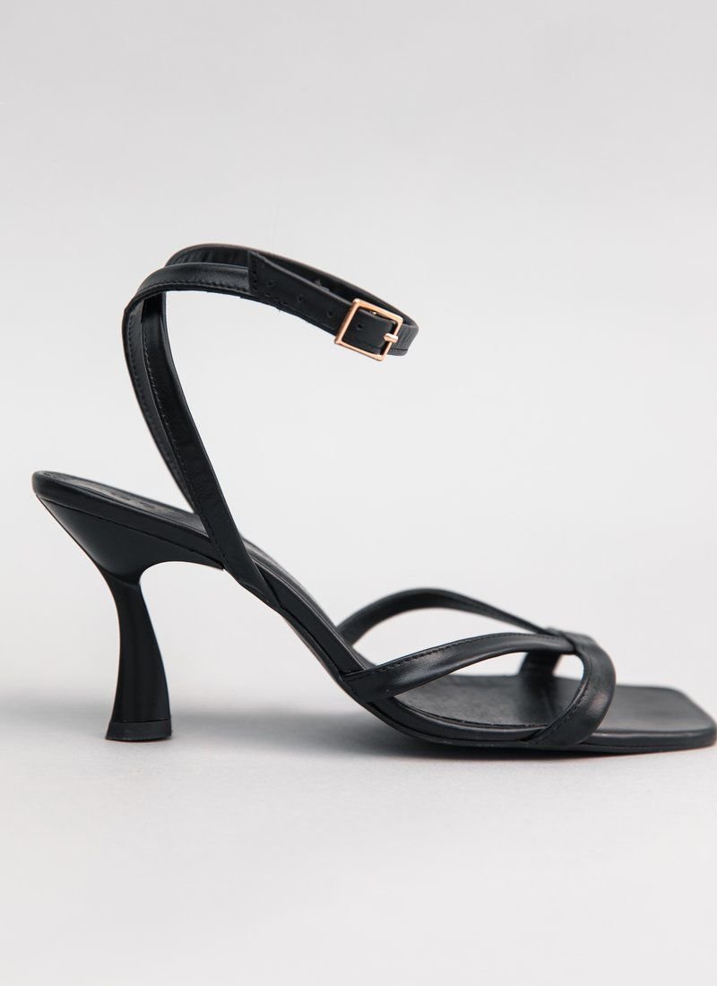 Sandals will fit into the image of any complexity, whether it's an all-black outfit or a set assembled according to the rules of color block. Smooth leather with a matte surface makes shoes cleaned of decor with thin straps multitasking.
