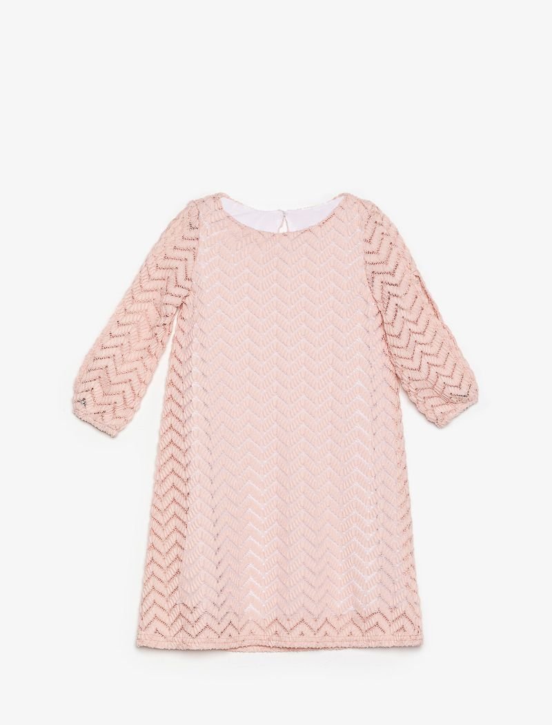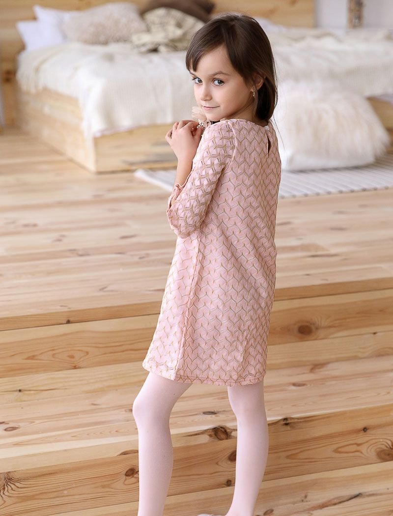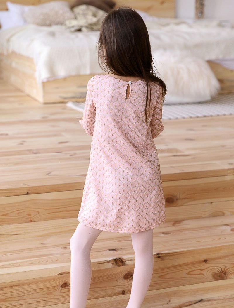 Children's A-line dress with a golden thread and a spectacular 3/4-length sleeve decorated with a small slit.