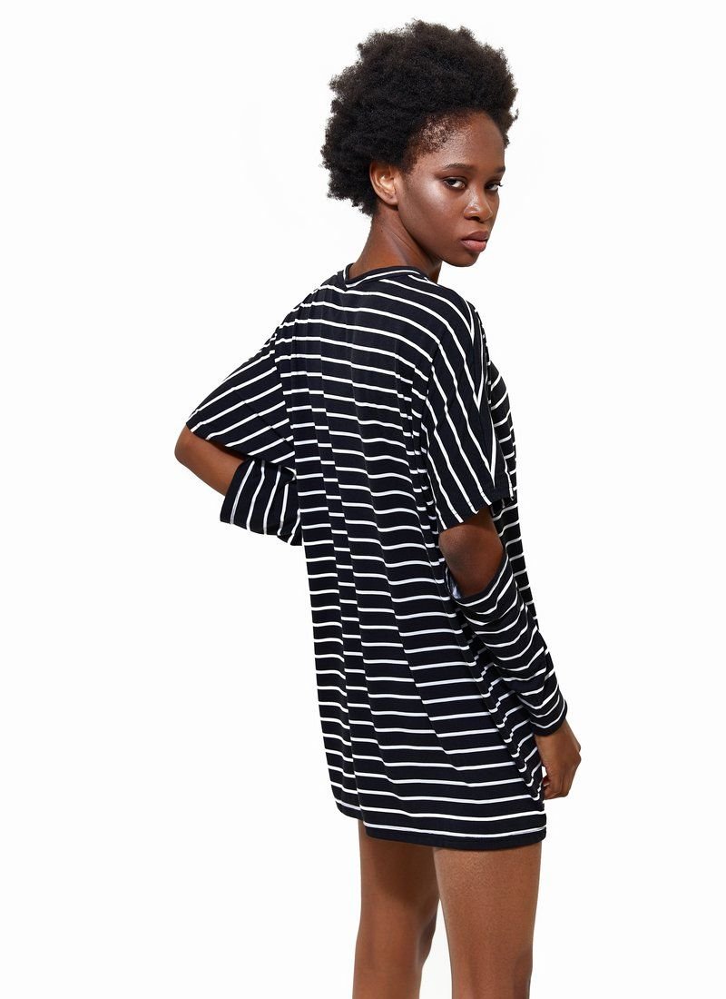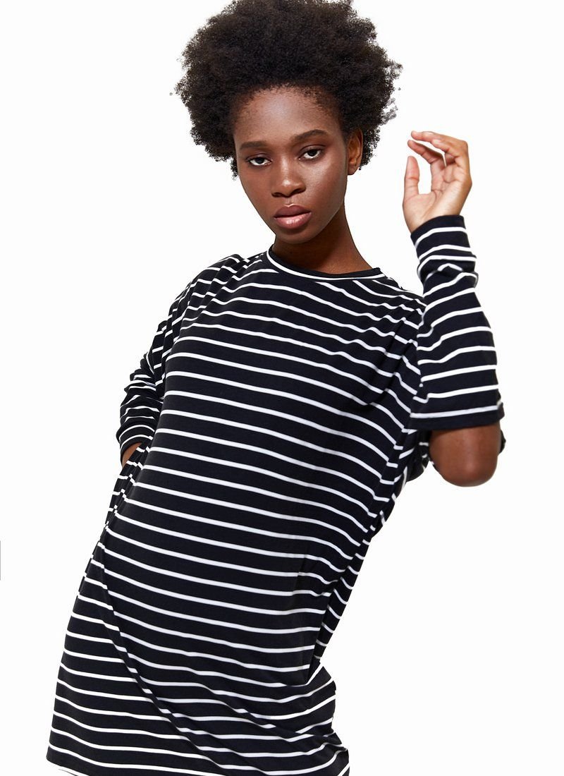 A marine-style tunic made of blended cotton. Loose fit, elastic insert at the neck and a long sleeve with a trendy neckline.