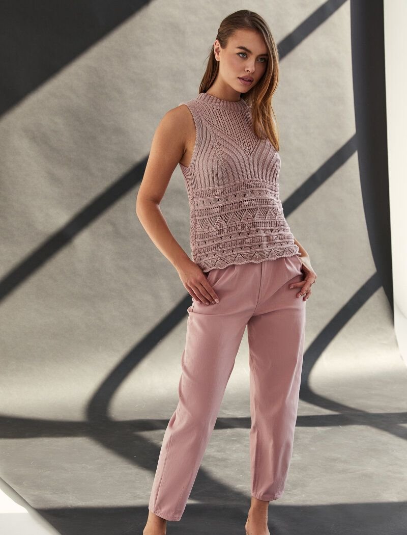 Jeans of a pink shade are made of mixed cotton, which allows you to feel comfortable. Models of a similar cut of mom fit could be seen at the shows of FW ' 20/21 in the collections of Chloe and Christian Dior.