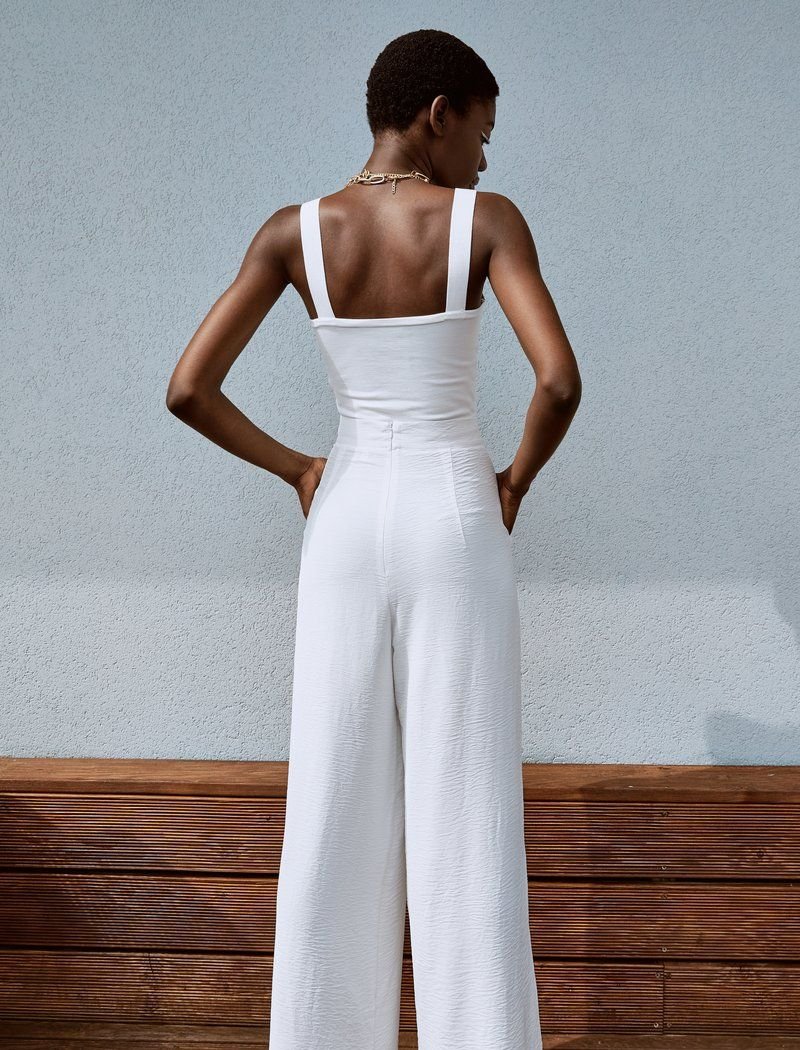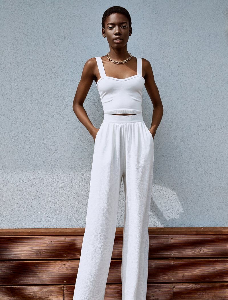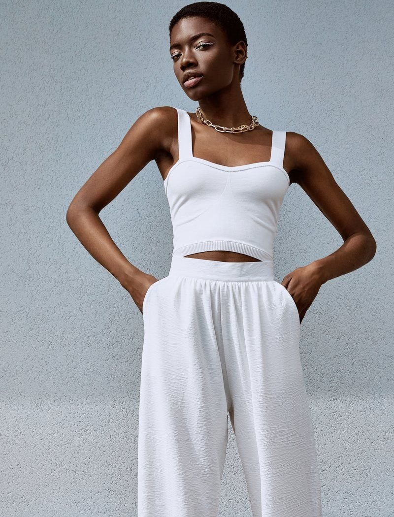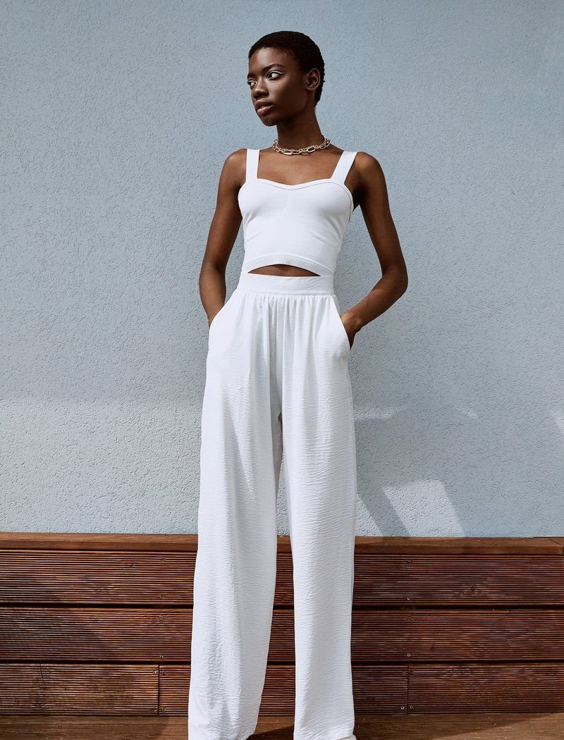 Wide trousers are perfect for a relaxed look in hot weather. The lightweight material allows the skin to breathe. The high fit puts the emphasis on the waist.