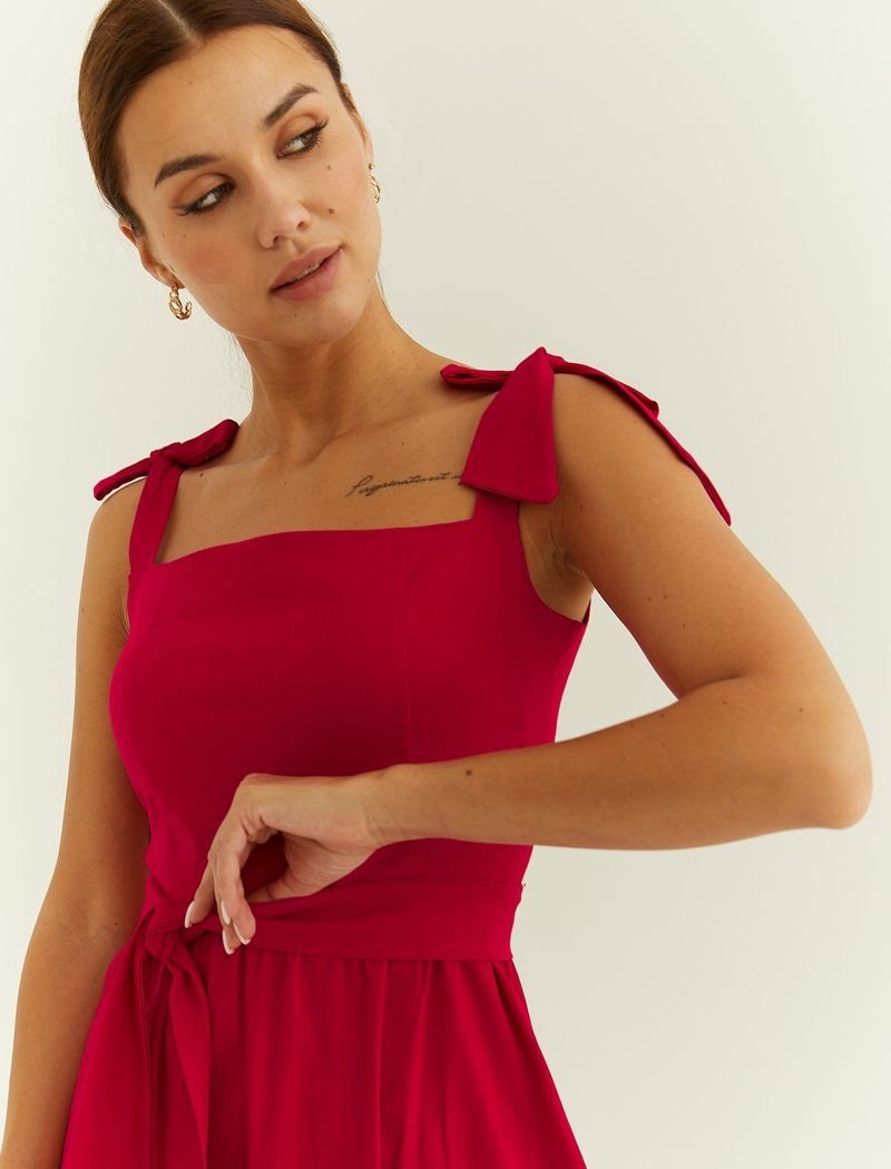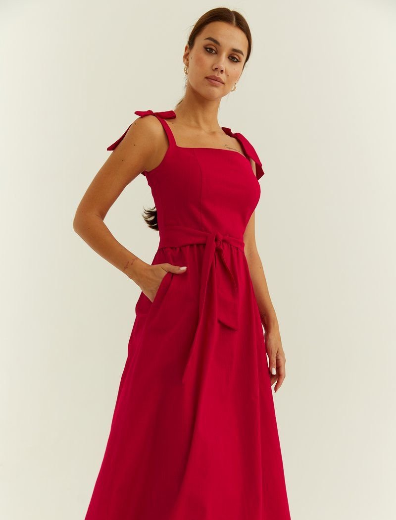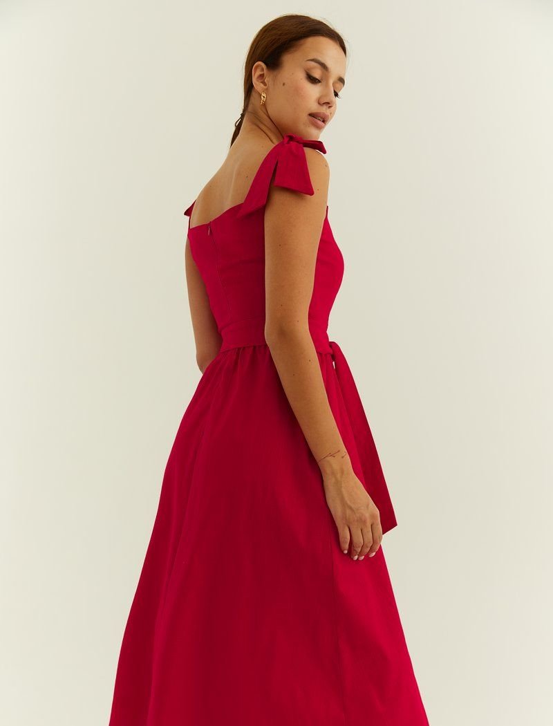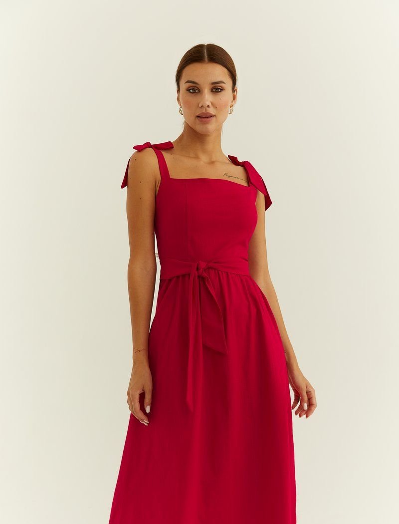 A linen sundress can look feminine with both heeled sandals and flat-soled sneakers. The right mood is set by a fitted cut and ties on wide straps. Thin linen was used for sewing the model.