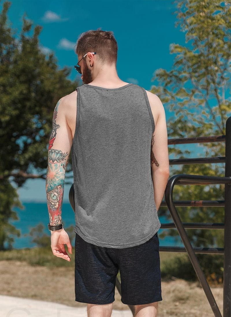 Summer T-shirt of a loose fit with a rounded hem and a patch, made of cotton fabric with decorative breaks.