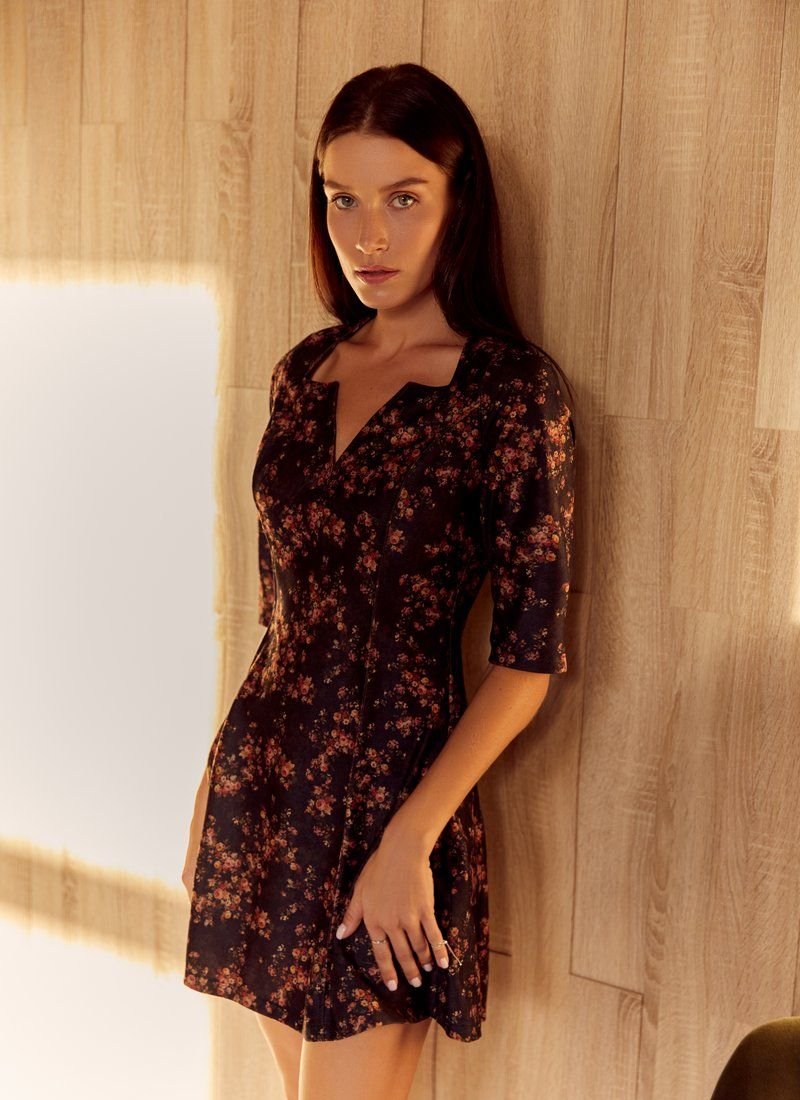 Suede mini dress with a curly neckline, cropped sleeve, floral print. In their autumn collections, such brands as Balenciaga and Altuzarra also preferred floral prints.