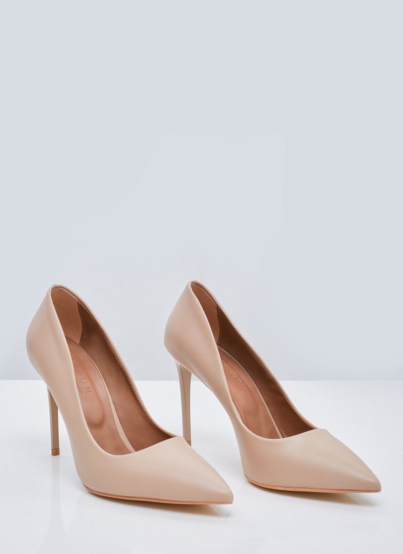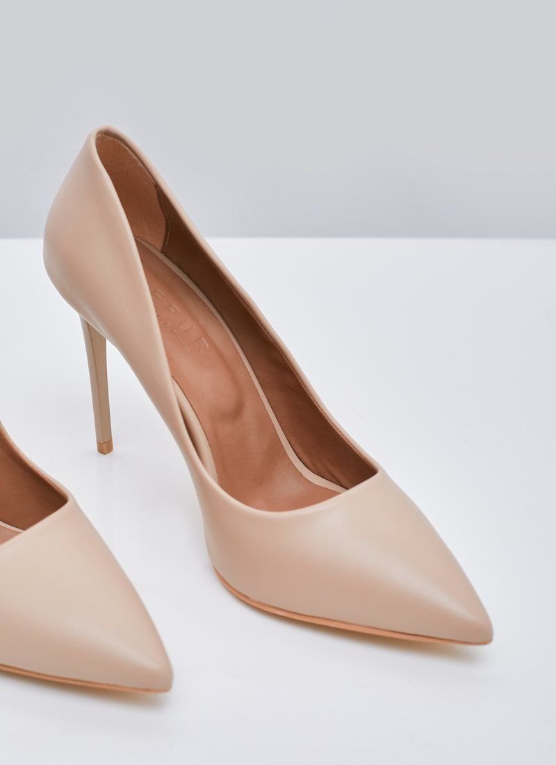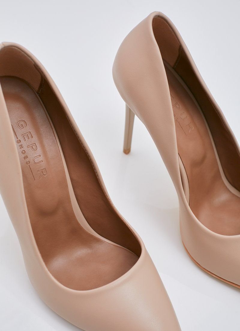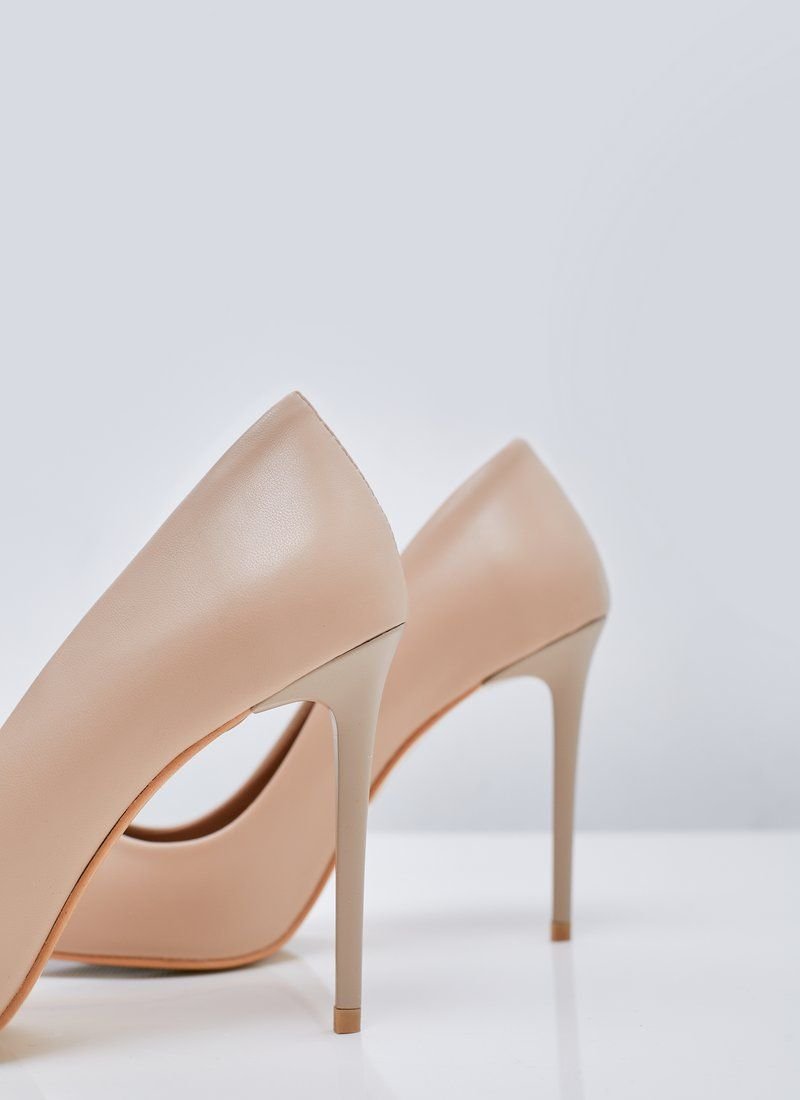 Sophisticated beige pumps with a stiletto heel, with a pointed toe. The classic timeless model will be relevant for more than one season. The heel height is 11 cm.