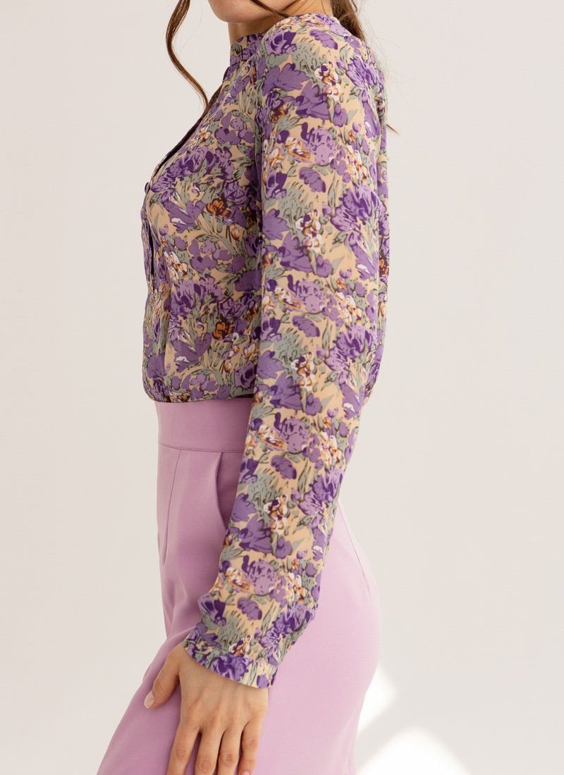 A floral motif is responsible for the right mood of the blouse, which was included in the list of current trends of the SS’21 season according to Vogue. The femininity of the model is also supported by a thin chiffon.