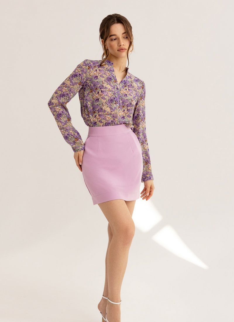 A floral motif is responsible for the right mood of the blouse, which was included in the list of current trends of the SS’21 season according to Vogue. The femininity of the model is also supported by a thin chiffon.