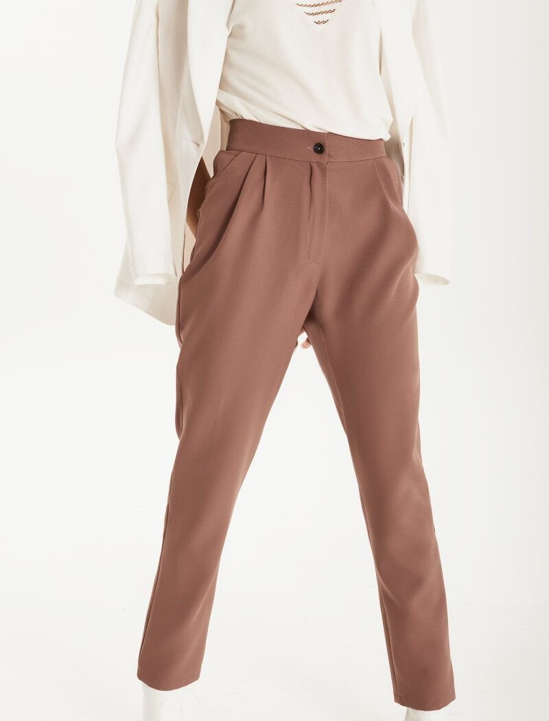 Laconic trousers. High waist, narrow cut, pinches and two welt pockets.