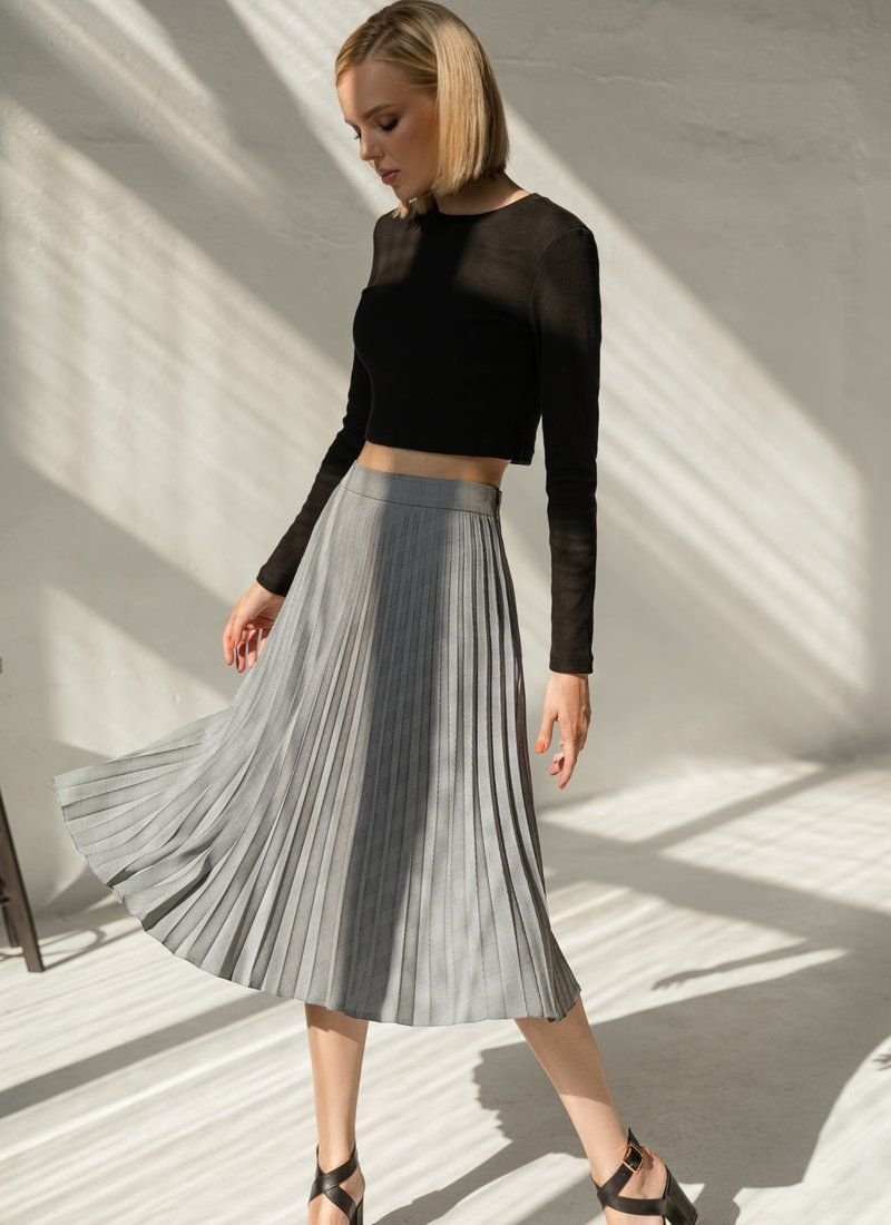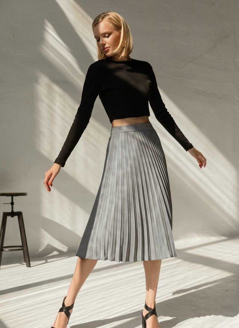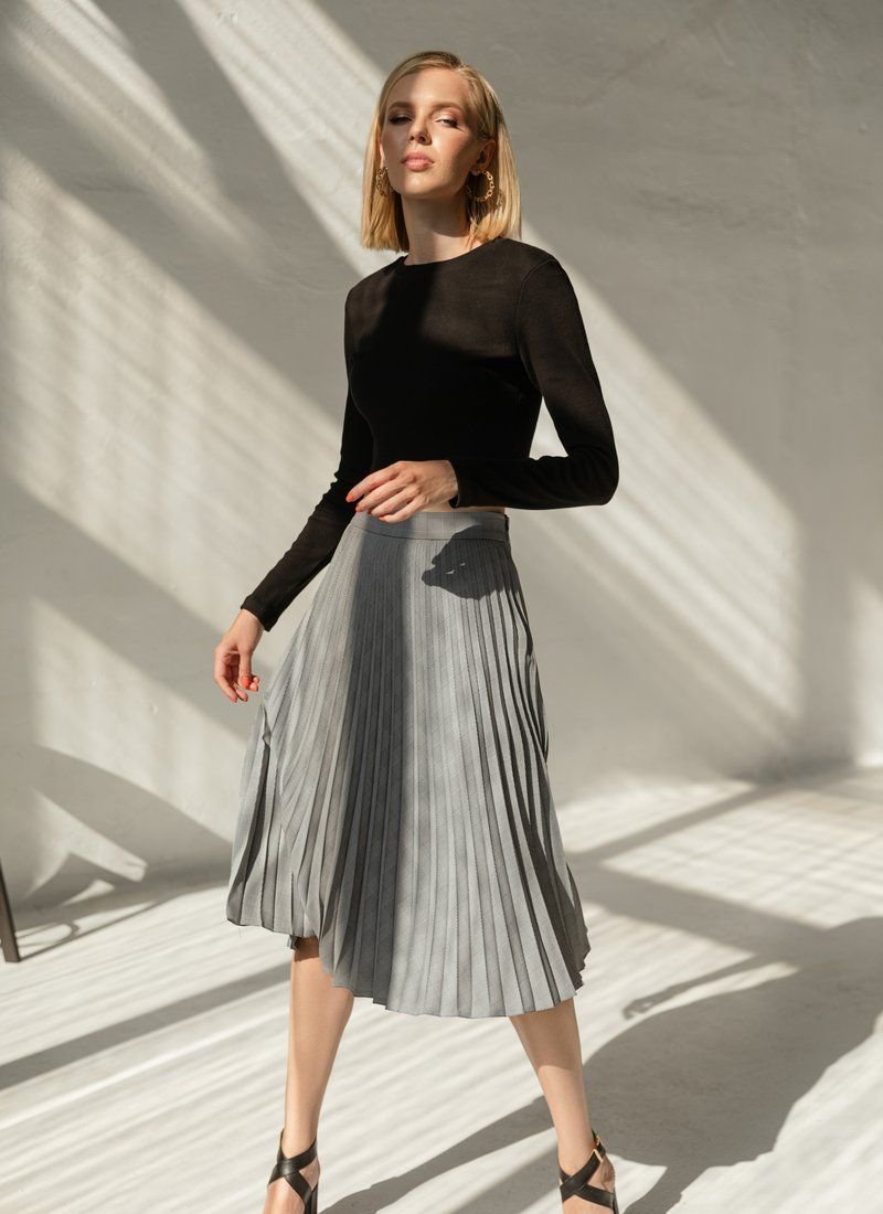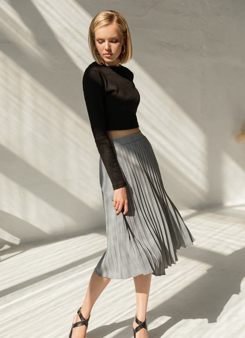 Cropped black ribbed longsleeve with a round neck. Knitted fabric, long fitting sleeve.