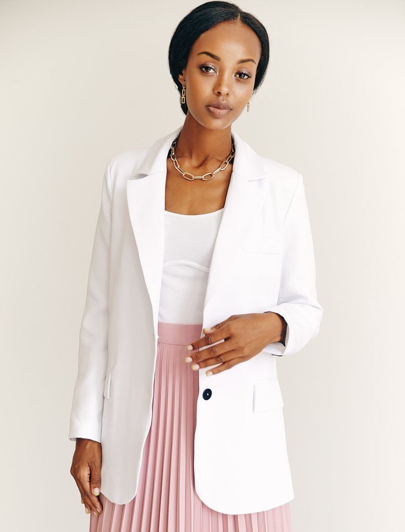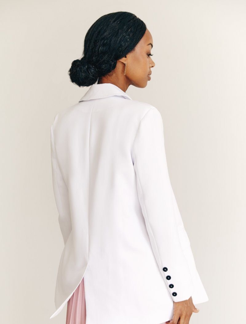A classic #ffffff jacket will add elegance to your image. Jacket of a straight cut with a lining with rectangular lapels|buttons|with pockets.